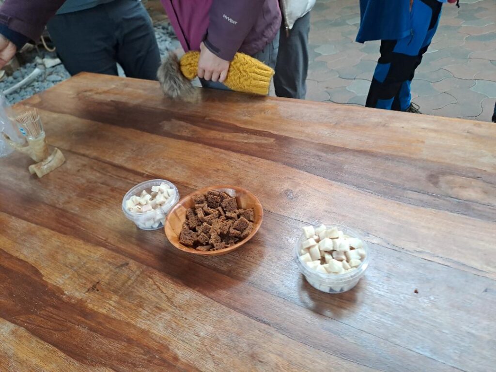 Now we were warned off this by our tour guide. He told us how his father in law had waited till he was eating it to tell him how it was produced. He said not to eat it, that it tasted as you’d expect- of urine. Not so! I admit I did carefully observe the guide and the previous group eating it first. Several people had a second piece, so that decided me, yes it was edible and tasted ok!
