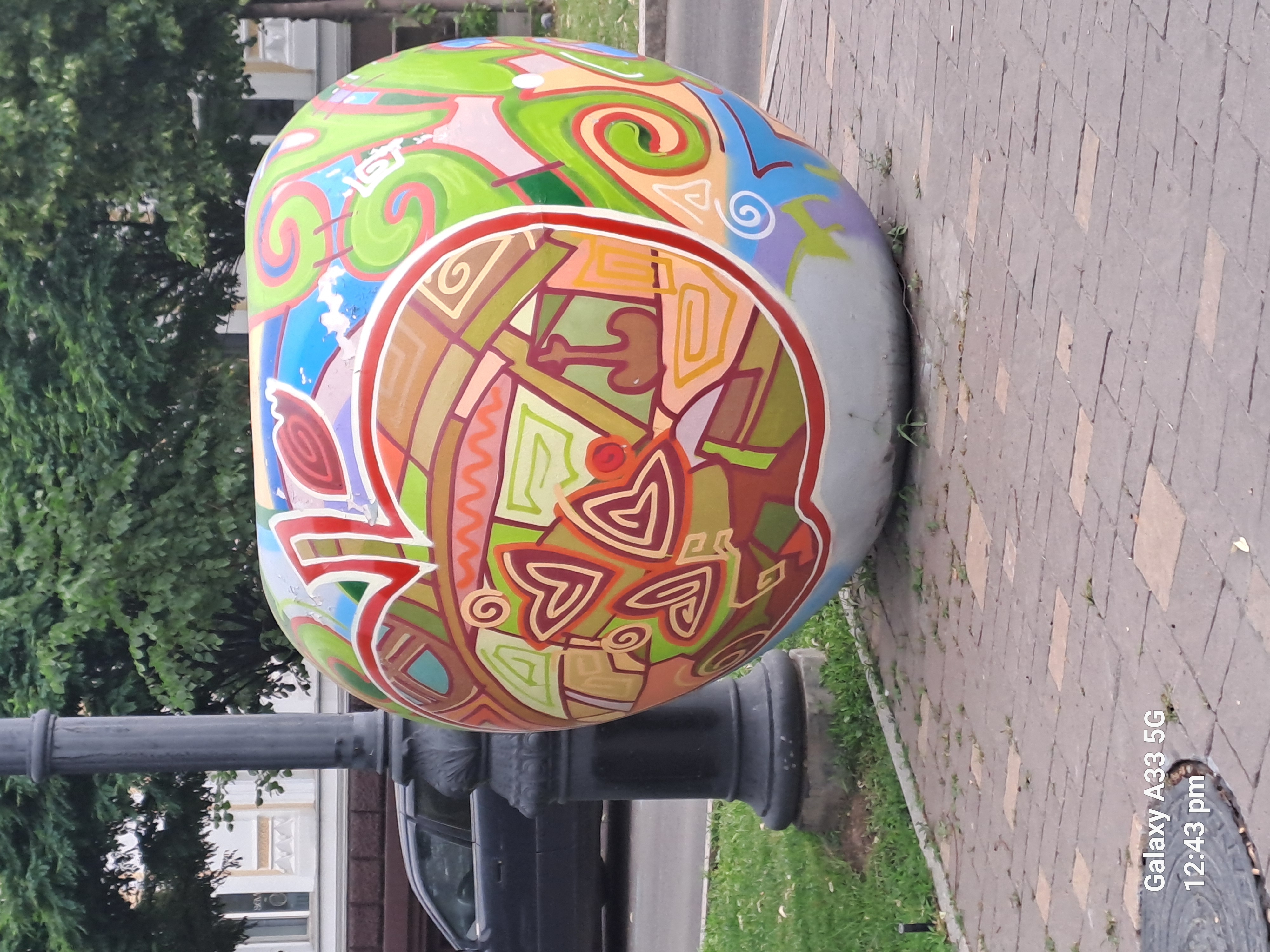 Here are a couple of street ornaments showing the importance of the zodiac and the apple locally.