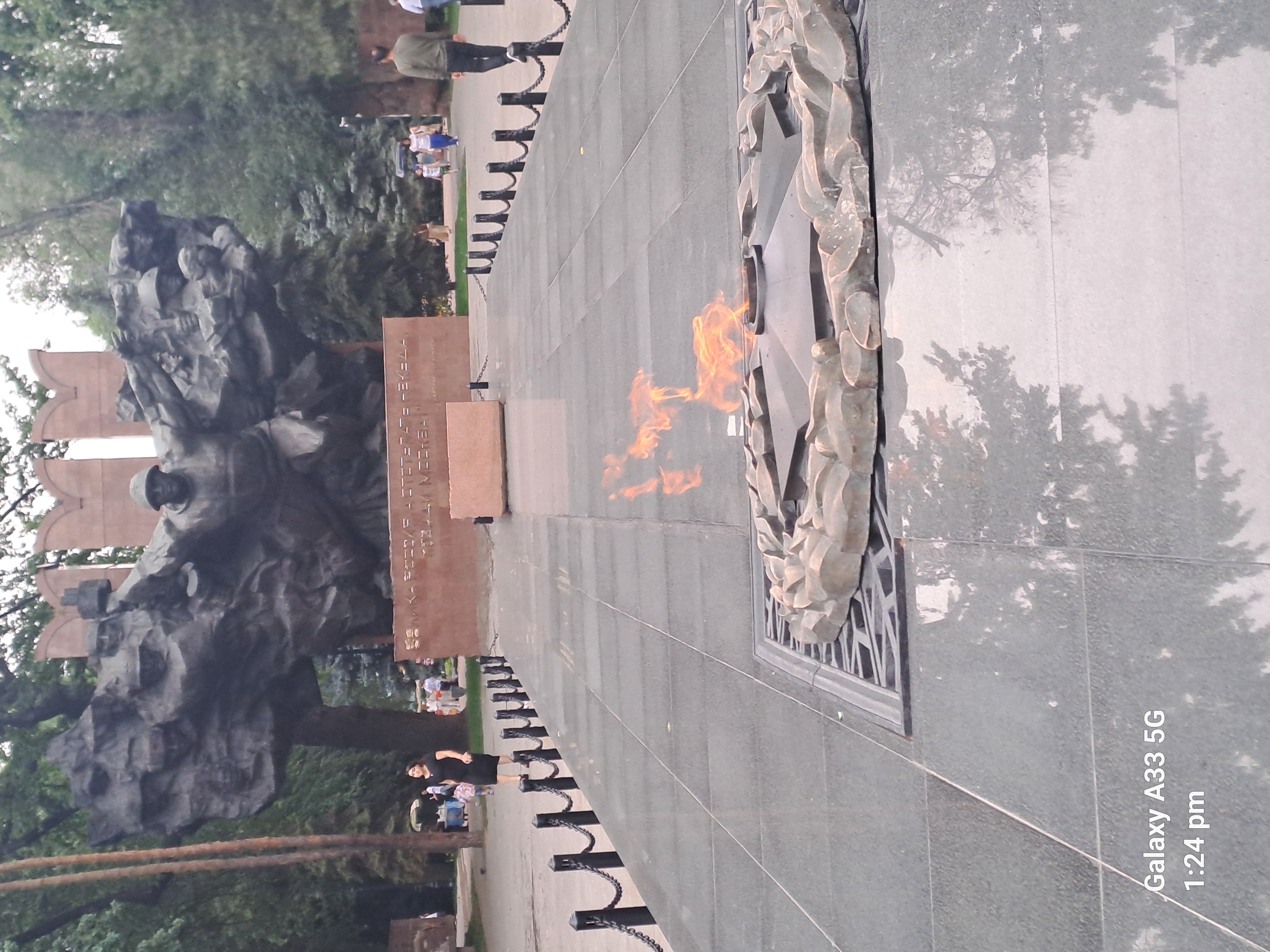 Almaty does not want to loose its history and it has these memorials to the second world war and the hero cities of the Soviet Union. The black boxes have sand from the cities inside them.