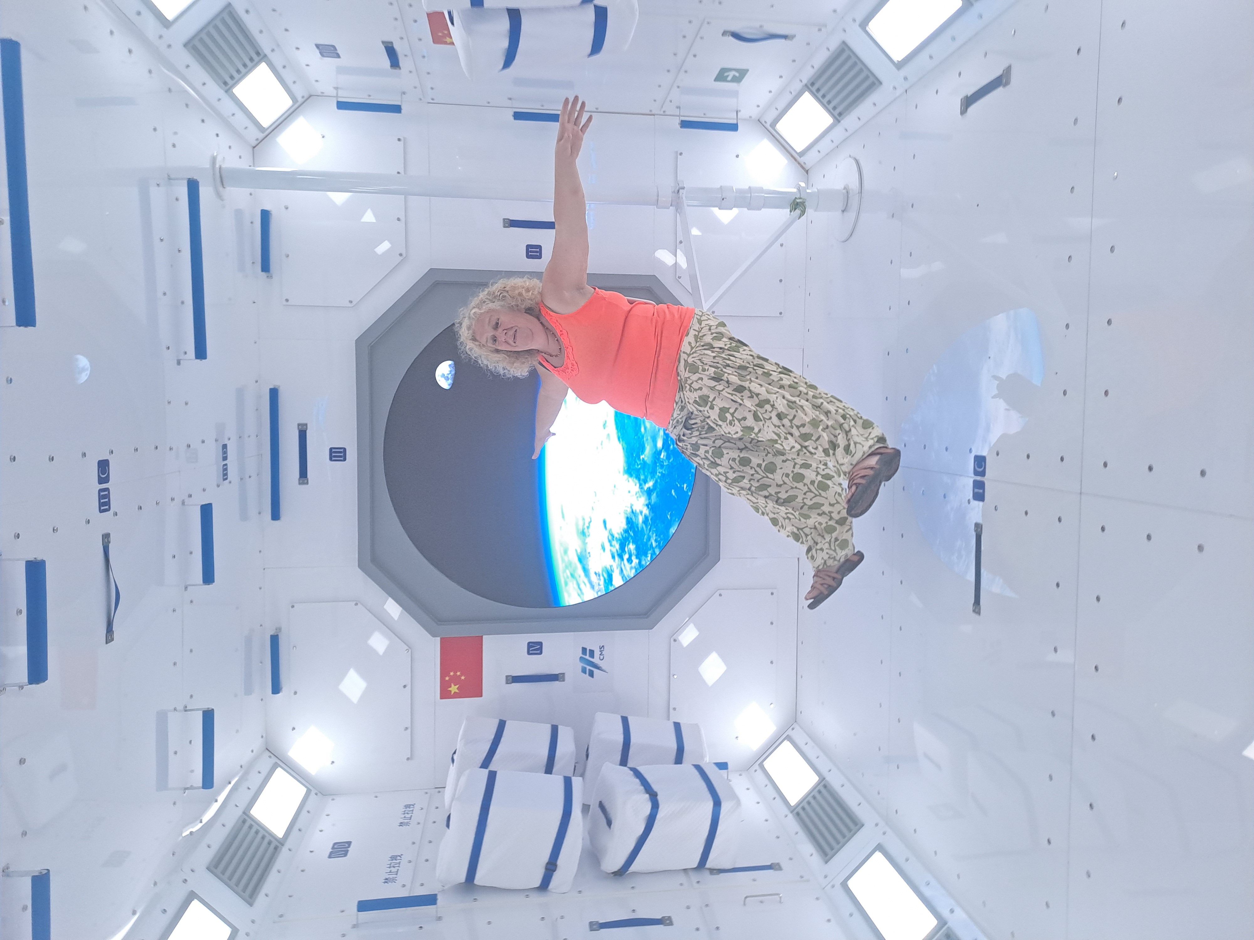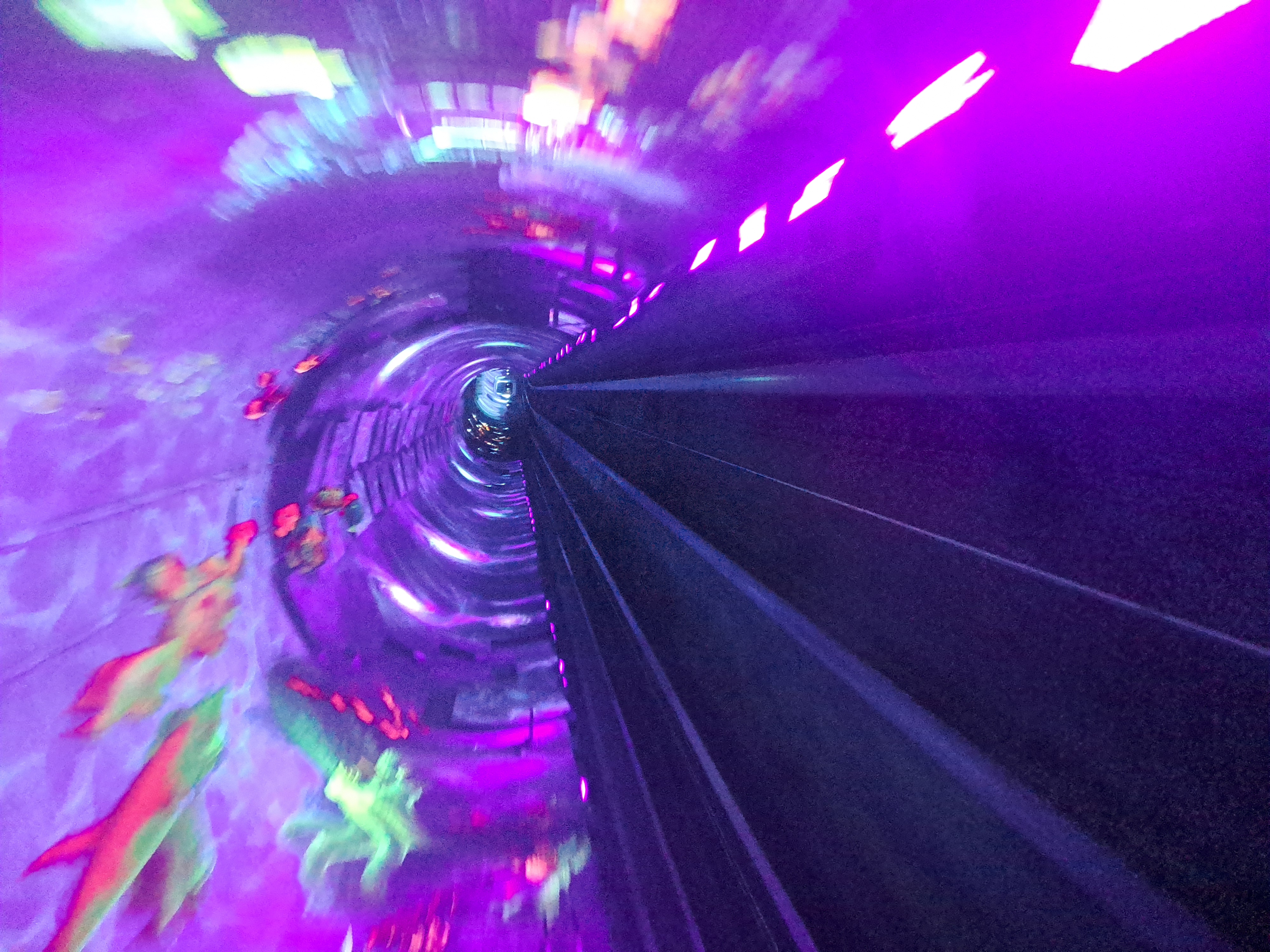 We took time out to see the sightseeing tunnel under the river. This is lit up with different themes through the short journey. At the far side we discovered we had paid for an interactive space theme experience. Ashley loved the ride through asteroids and falling buildings and space stations on a moving platform with video. We also took pictures of our selves in “free fall”.