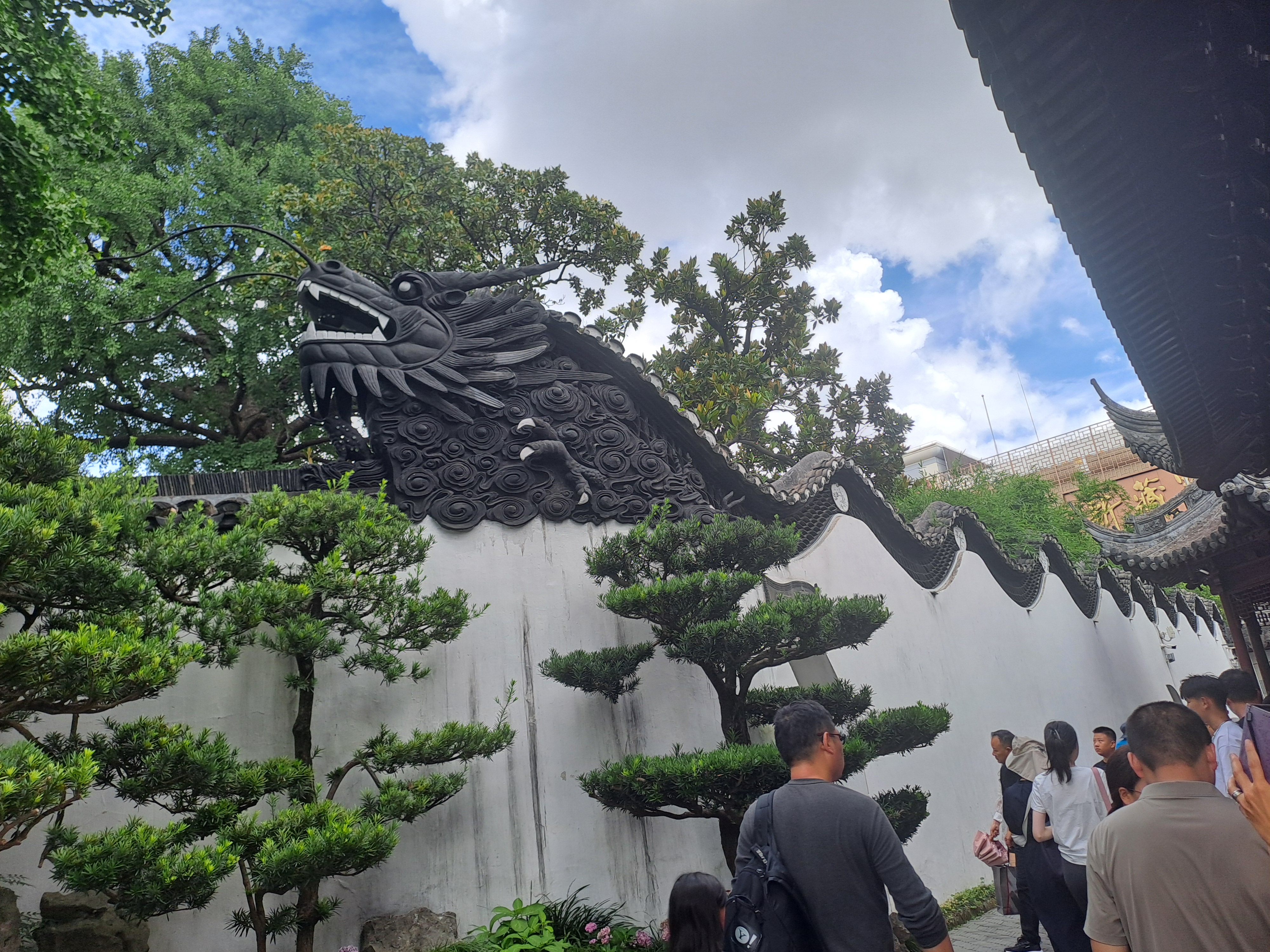 The next day we went to the Yu Garden a centuries old formal garden hosting the “exquisite Jade rock” the centrepiece of the garden. The garden is a series of buildings and garden areas built with water areas and many rocks