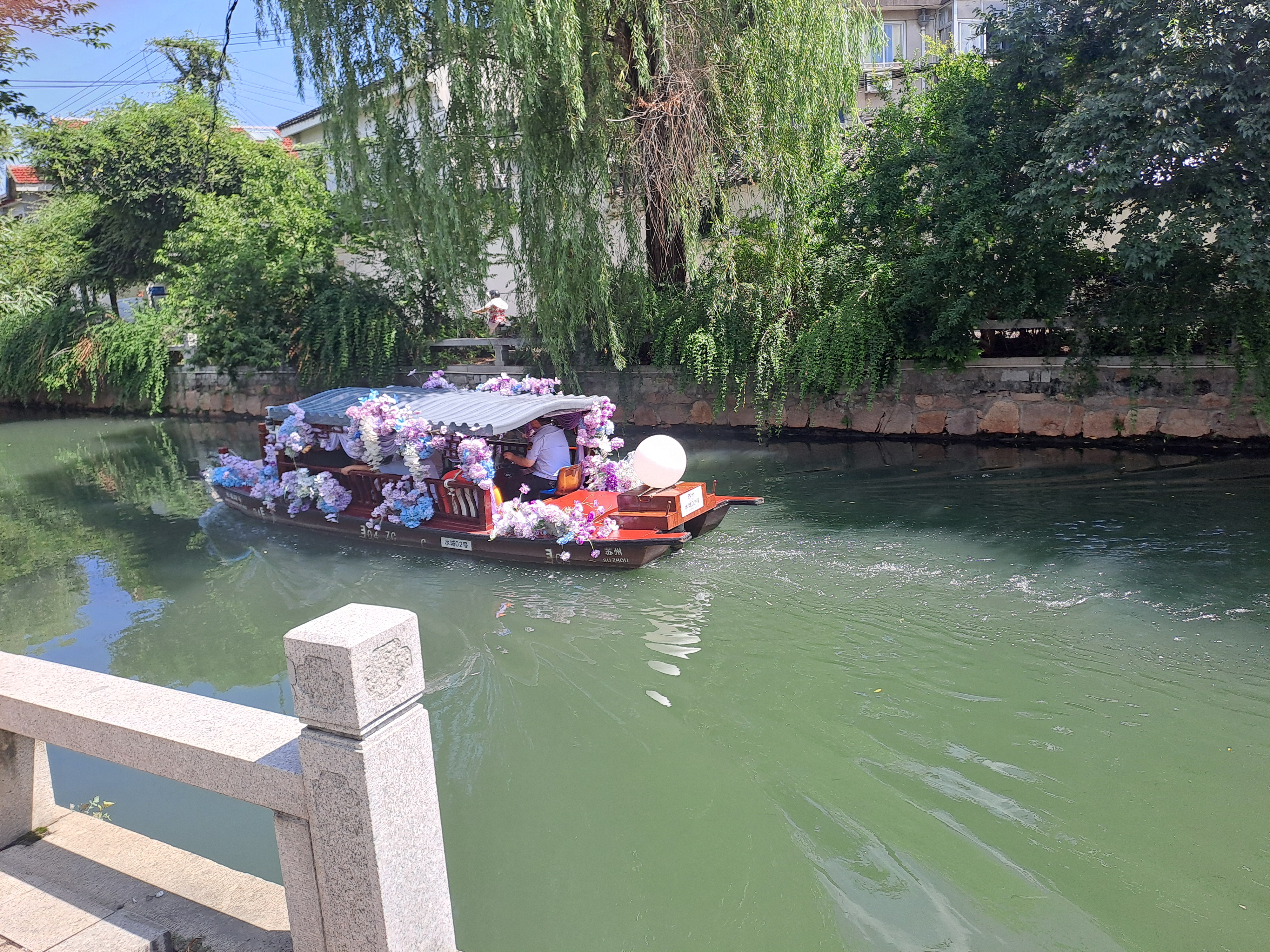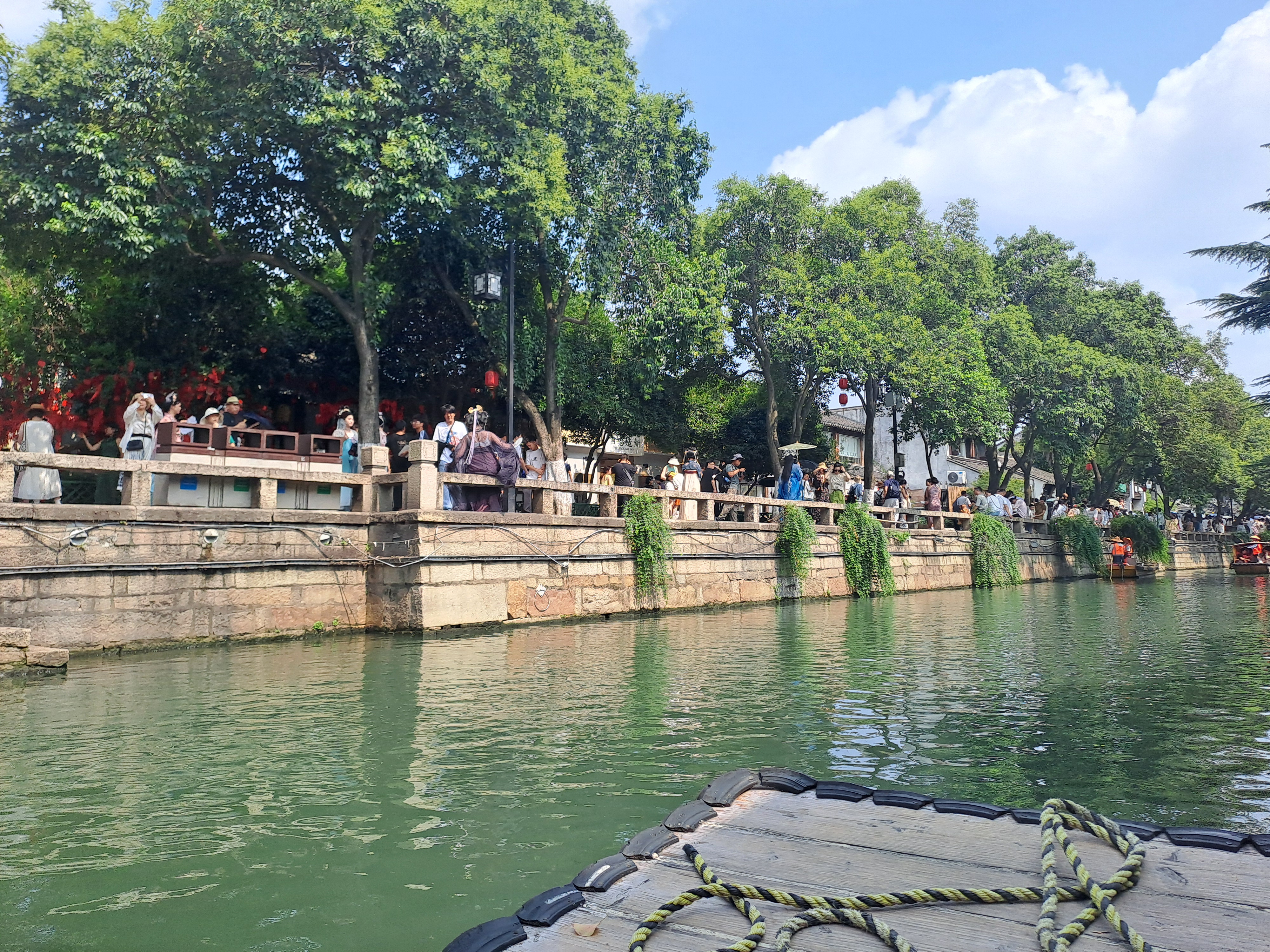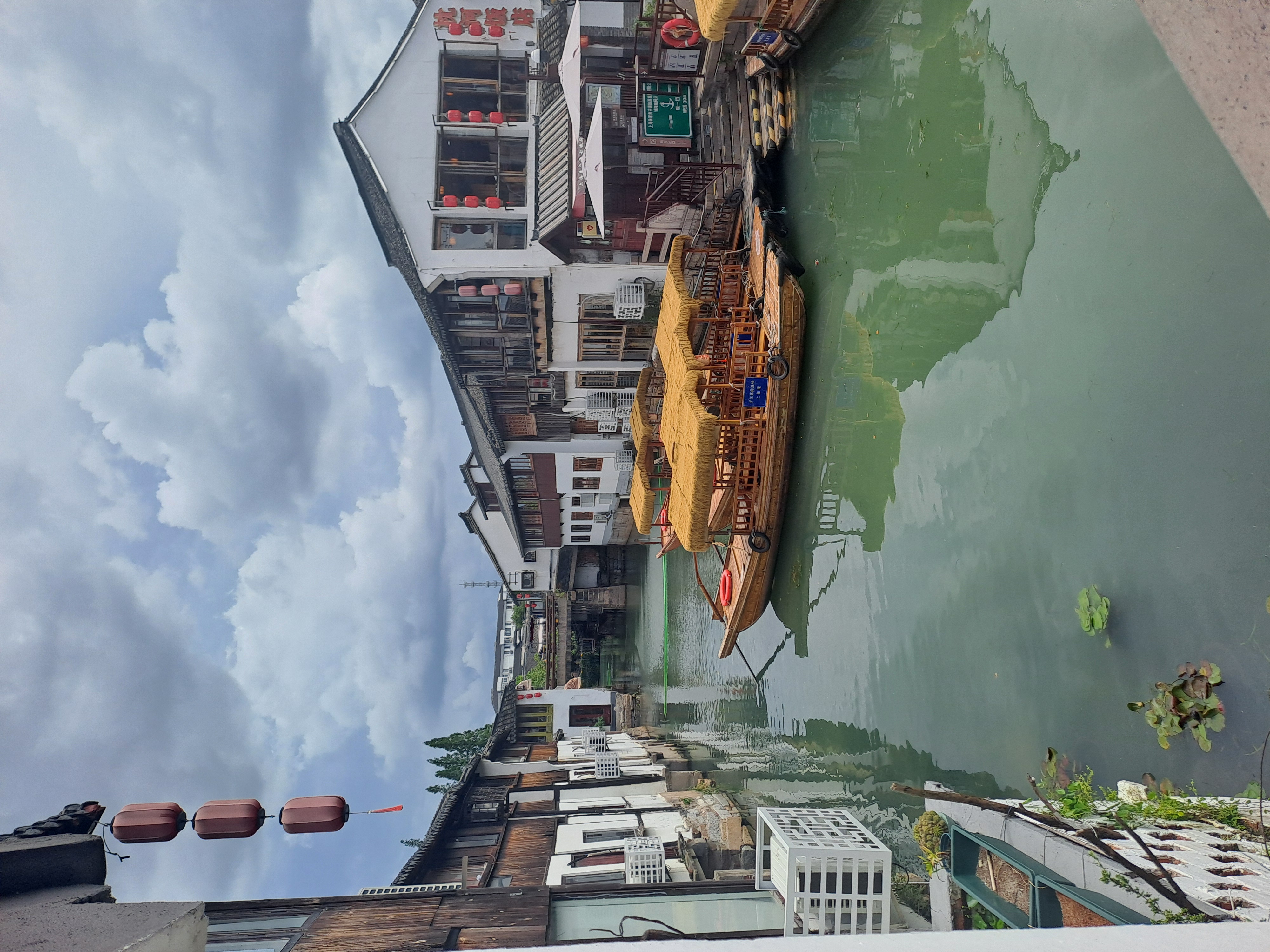 From there we went to one of the water villages, part of Shanghai’s inheritance as a fishing village. These are the Venice of Shanghai, complete with boats. We were unlucky with a boat trip as bad weather was forecasted and they had been stopped.