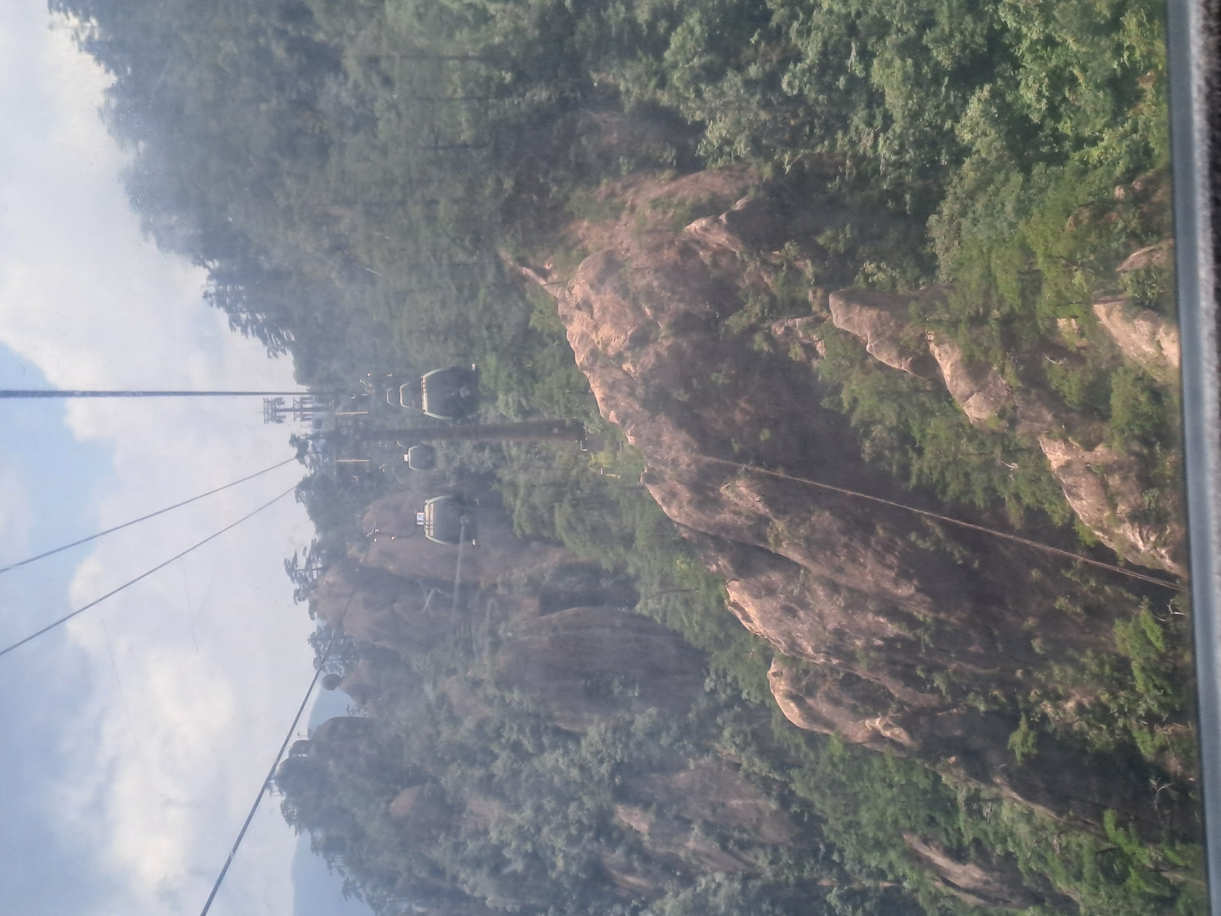 The journey was by shuttle from the nearest town up through bamboo forest with really thick stems, climbing and climbing untill we got near the cable car and then a long ride up iby cable up nto the mountains.