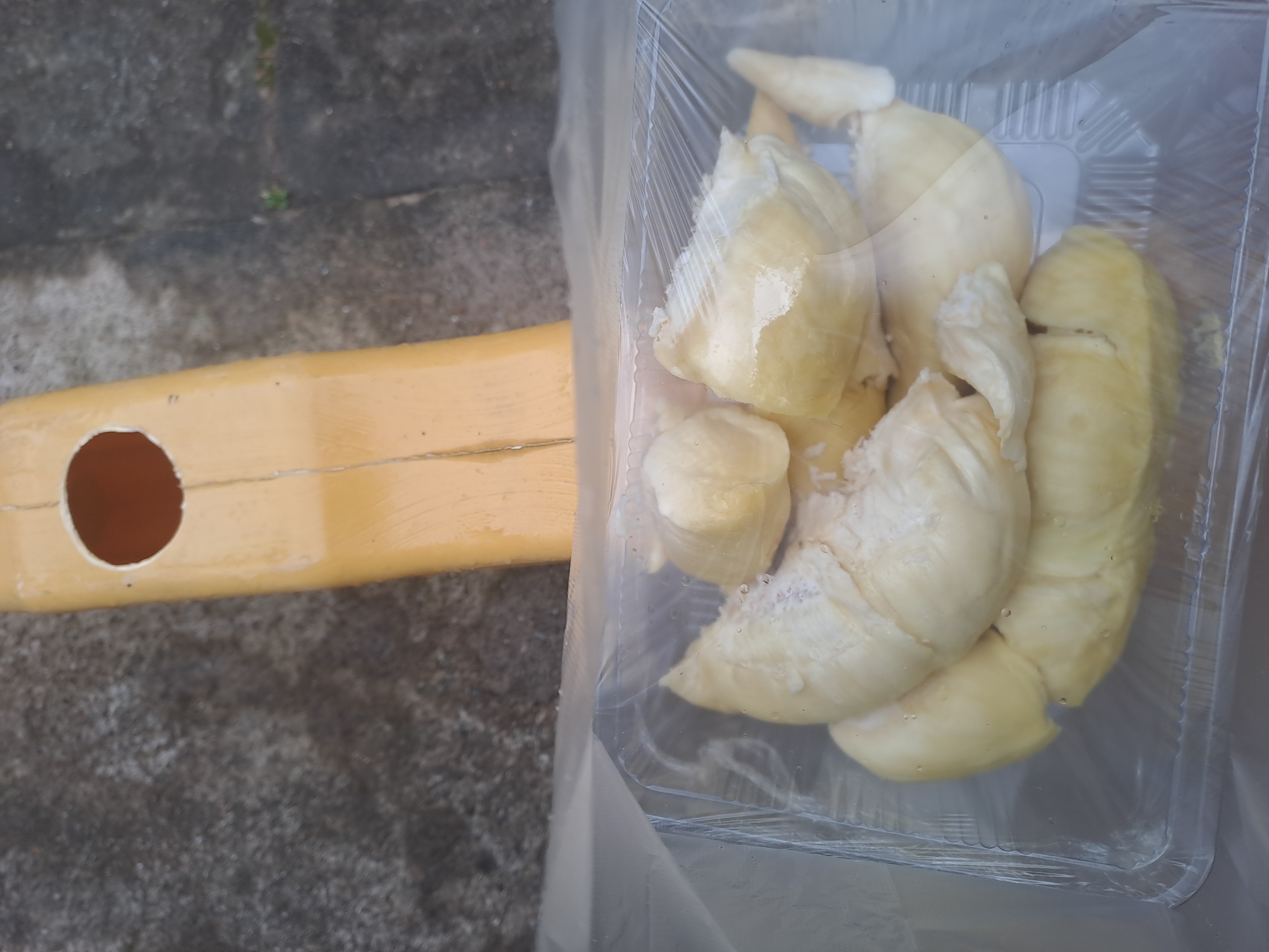 At night it was lit up and had lots of eating places. It was here I finally got to try Durian fruit- the smellyist fruit in the world. I checked out on Google how to prepare it but in the end the greengrocer offered to do it and presented me with a plastic tray of the edible part. I then met Jemmima outside the hotel to have a try.