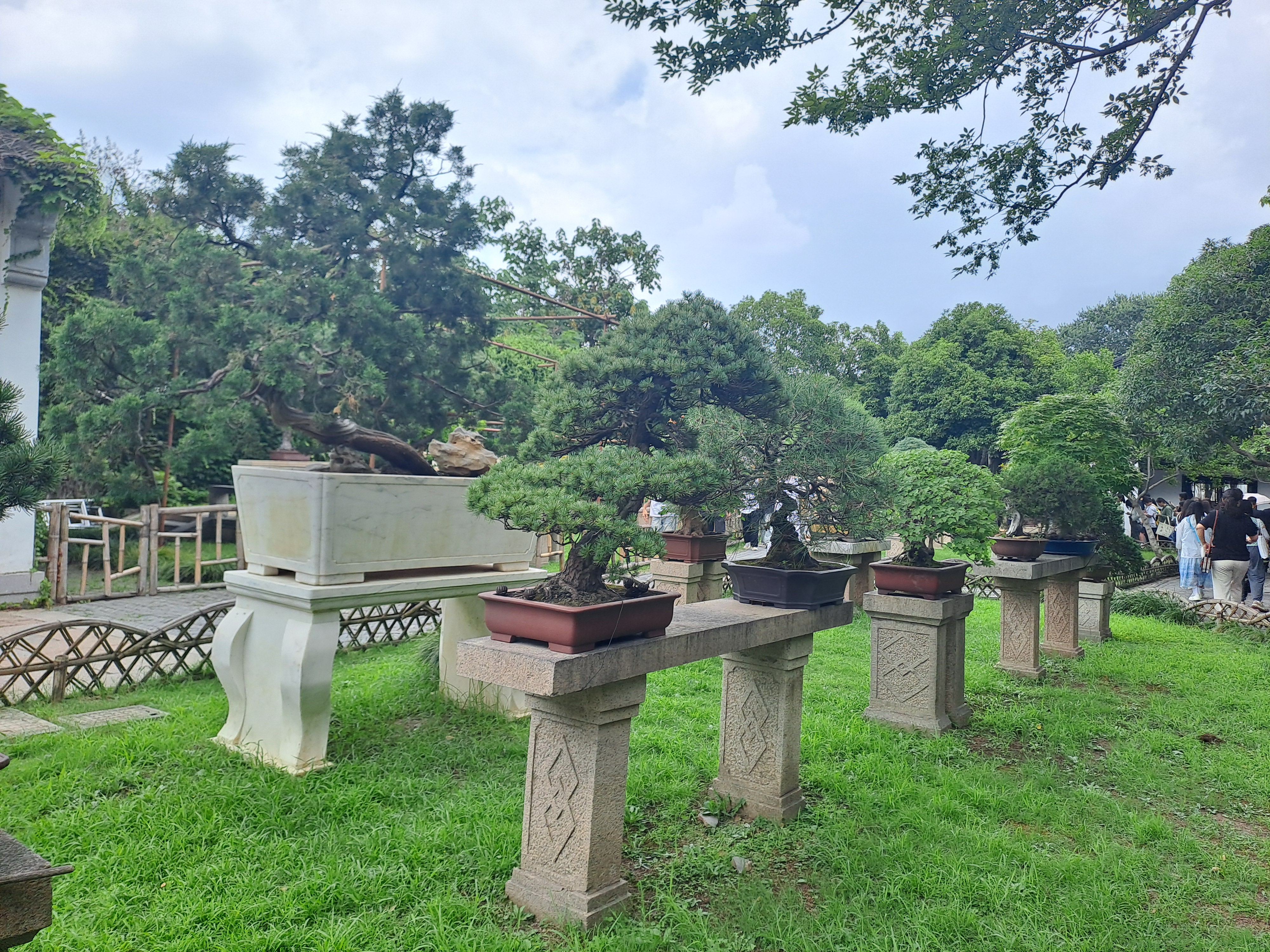 We wandered through many different garden areas buildings, bridges and water ways. We found a whole bonsai garden with some large bonsai. By the time we left it had got unpleasantly crowded and once outside we could see an enormous queue to get in and more coaches arriving.