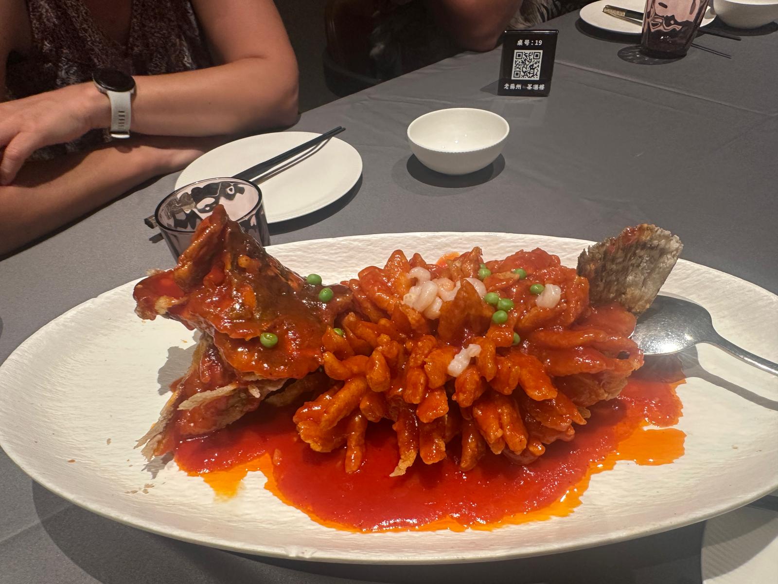In the evening we had the local delicacy squirrel fish, which is actually a Mandarin fish prepared to look like squirrel with a light batter and sweet and sour sauce.