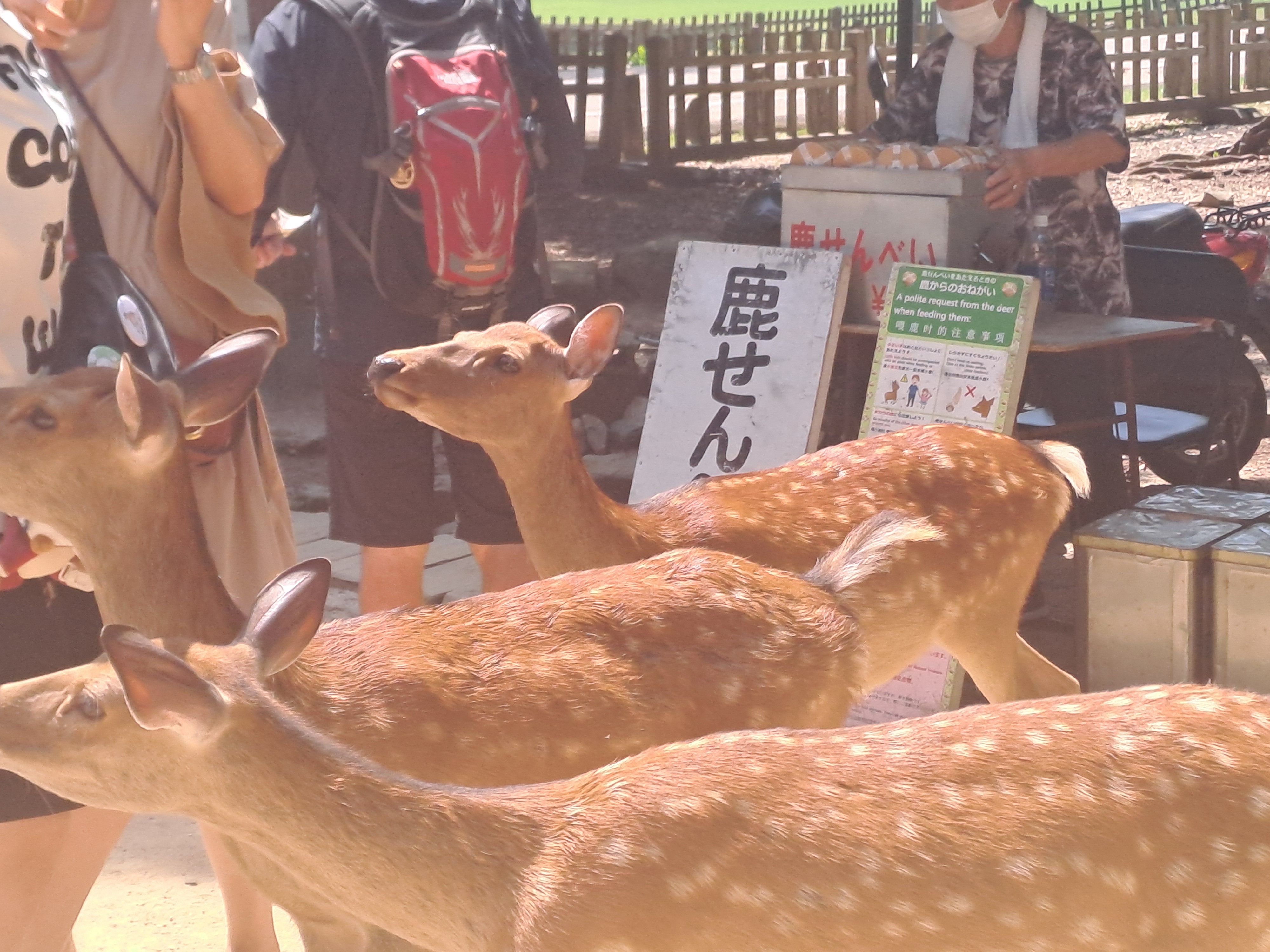 The deer are very used to being fed by tourists and very eager to get at the biscuits bought for them. It was quite entertaining watching them chase the would be feeders.