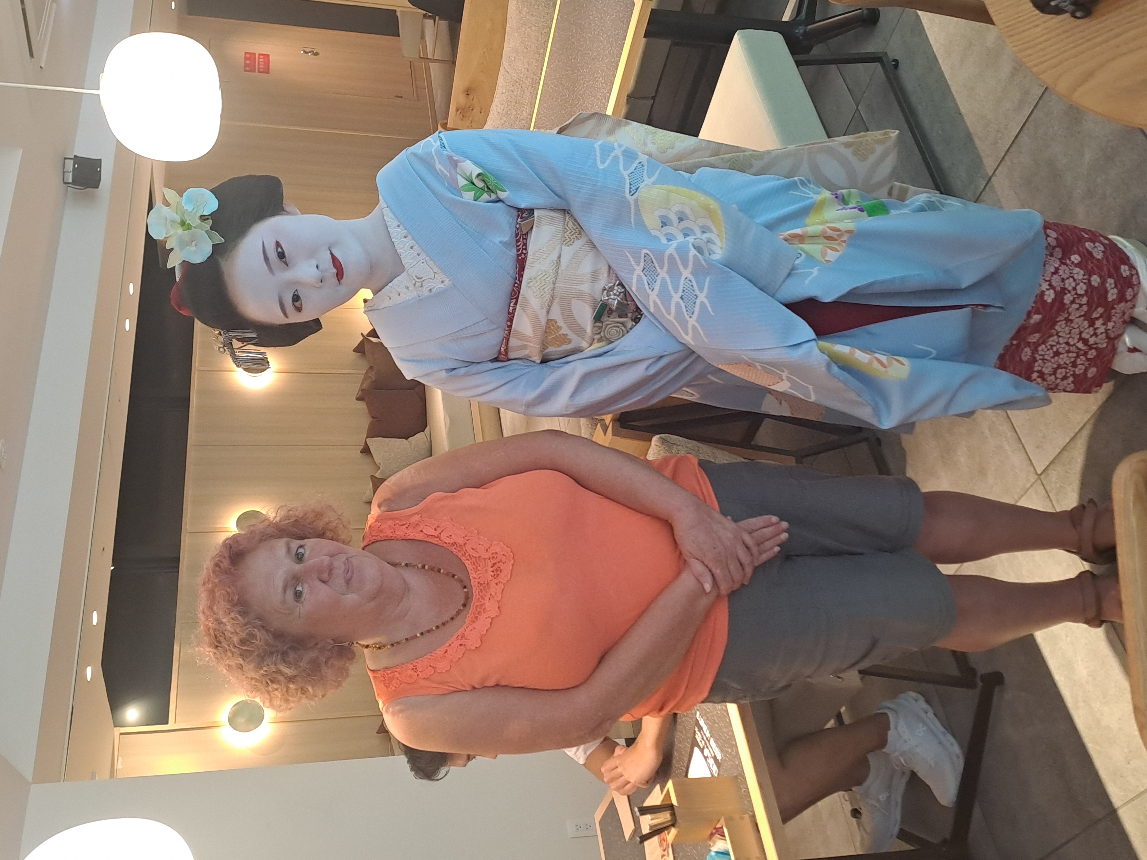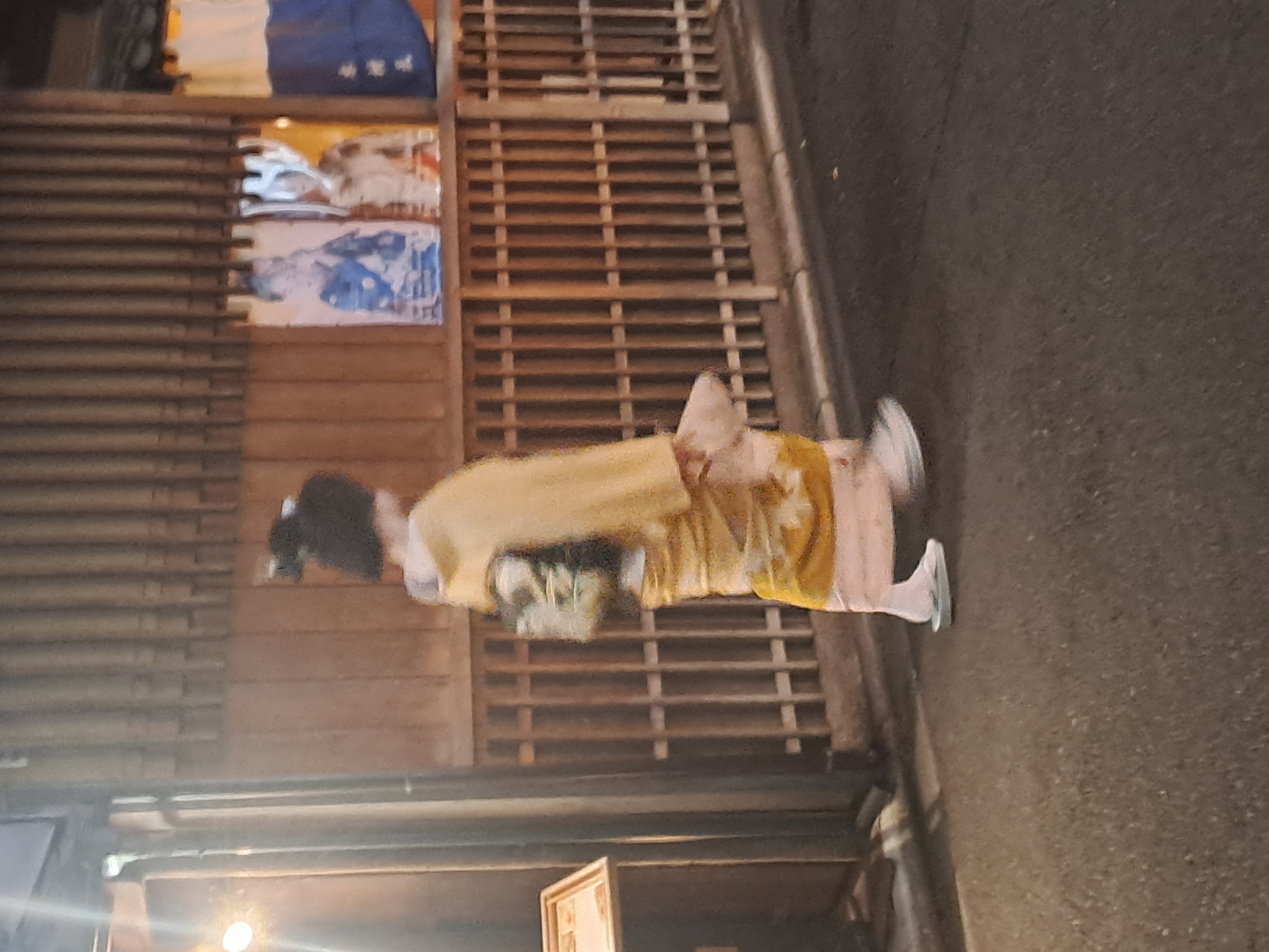 On returning to our hotel we found a Maiko there who was talking to guests and dancing. She spoke very good English. She had been training for 7 years so far and gets two days off a month. She can play around 5 instruments and disliked people coming up behind her and grabbing her for a photo rather than asking her.