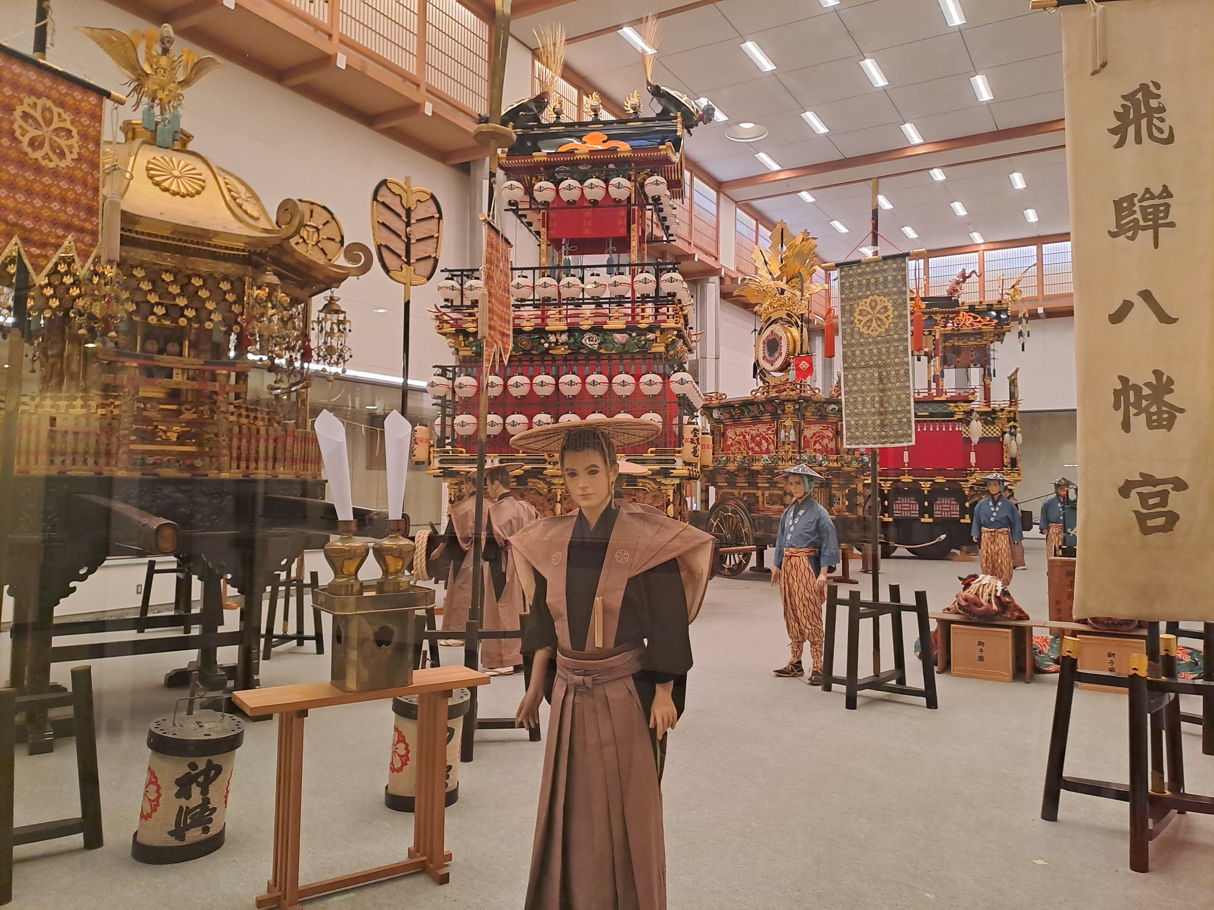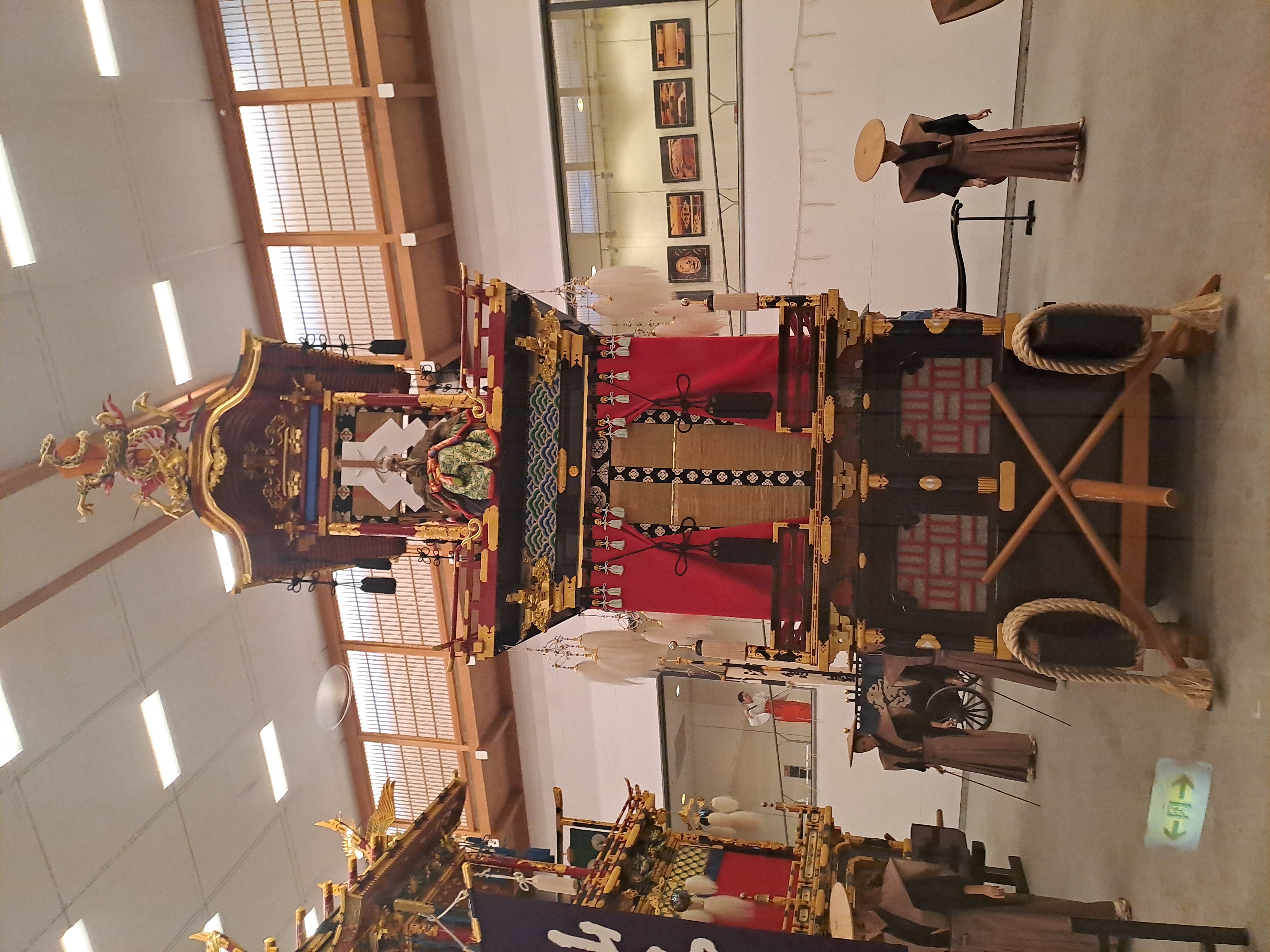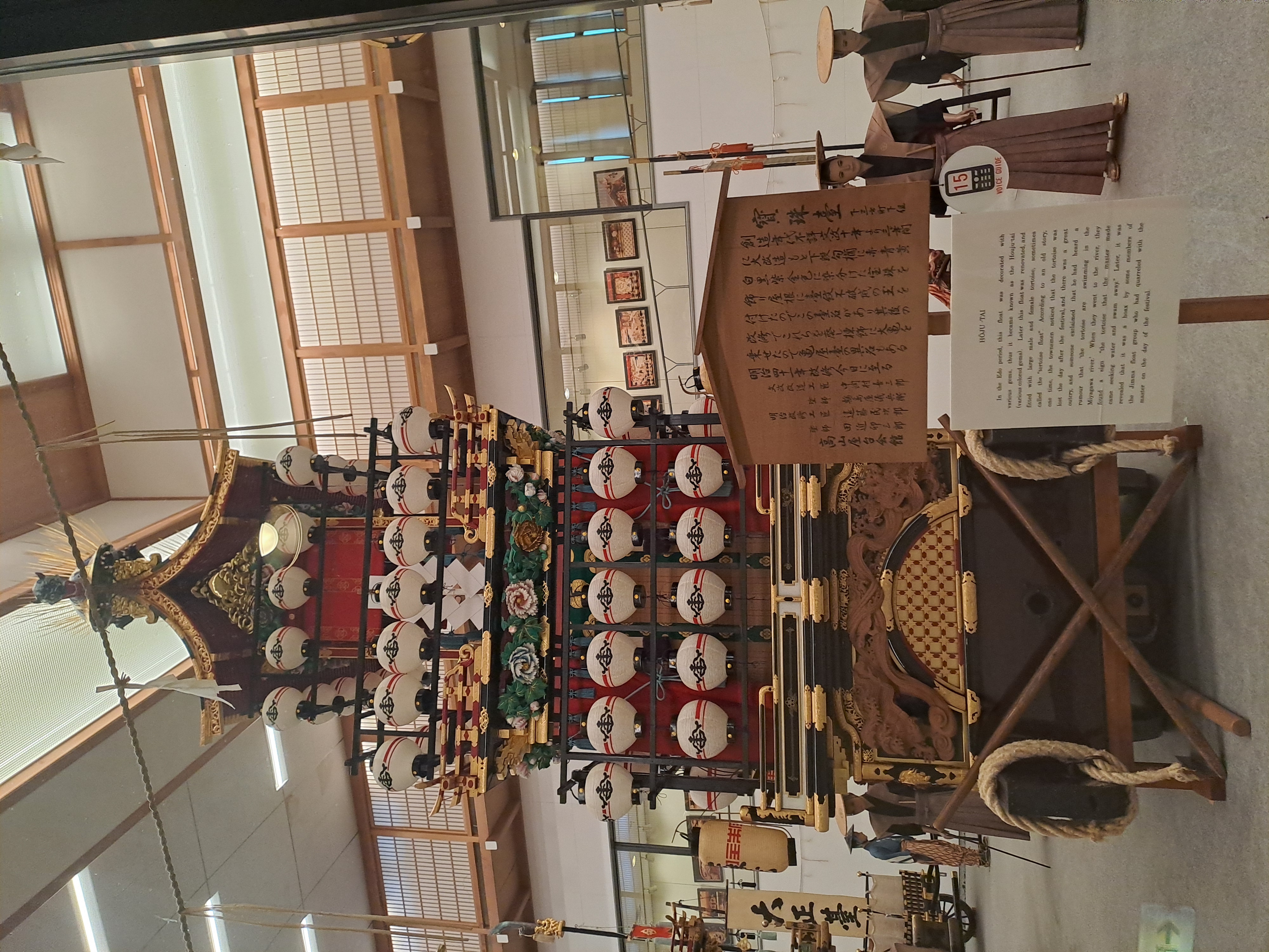 They keep a rotating collection of yatai floats here in total they have 25 floats 12 for one festival and 13 for the other. They are considered nationally important cultural properties. Some of them are several hundred years old and masterpieces of craftsmanship. Some have puppets as part of the floats. Up 80 men are required to carry each float.