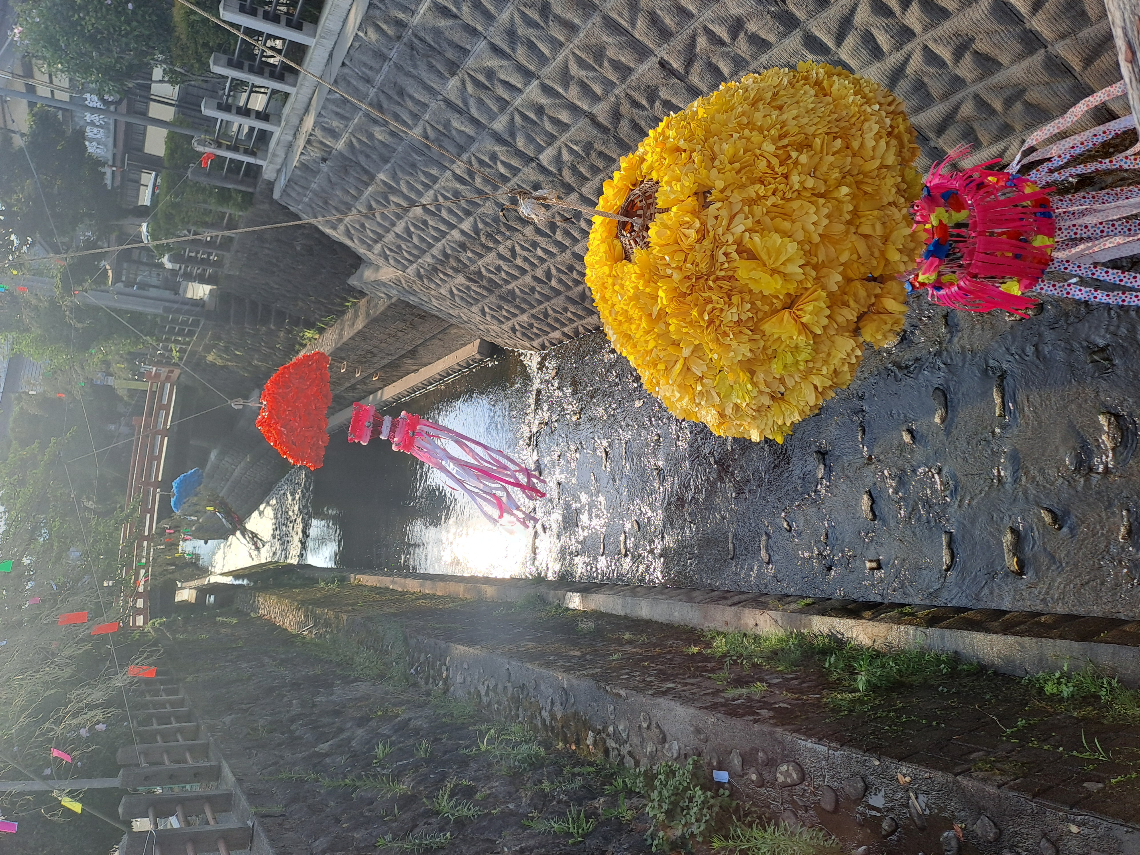 They also had a replica of Nikko’s Toshugo shrine . Decorations were strung across the river on the way back.