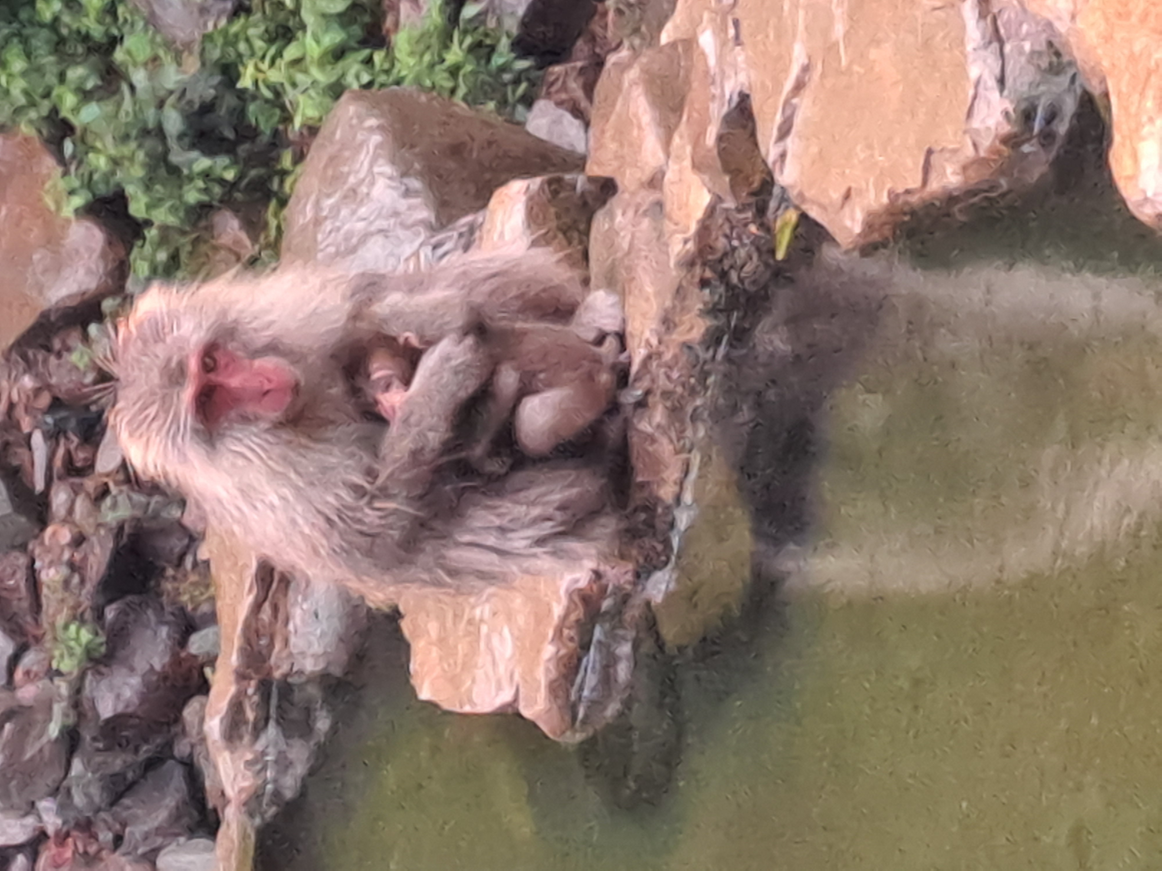 We had a real fun stop at Yudanaka. First we went to see the Snow Monkeys. They roam in the hills but are attracted to the hot springs here and supplies of food in winter. The geyser below goes continually.