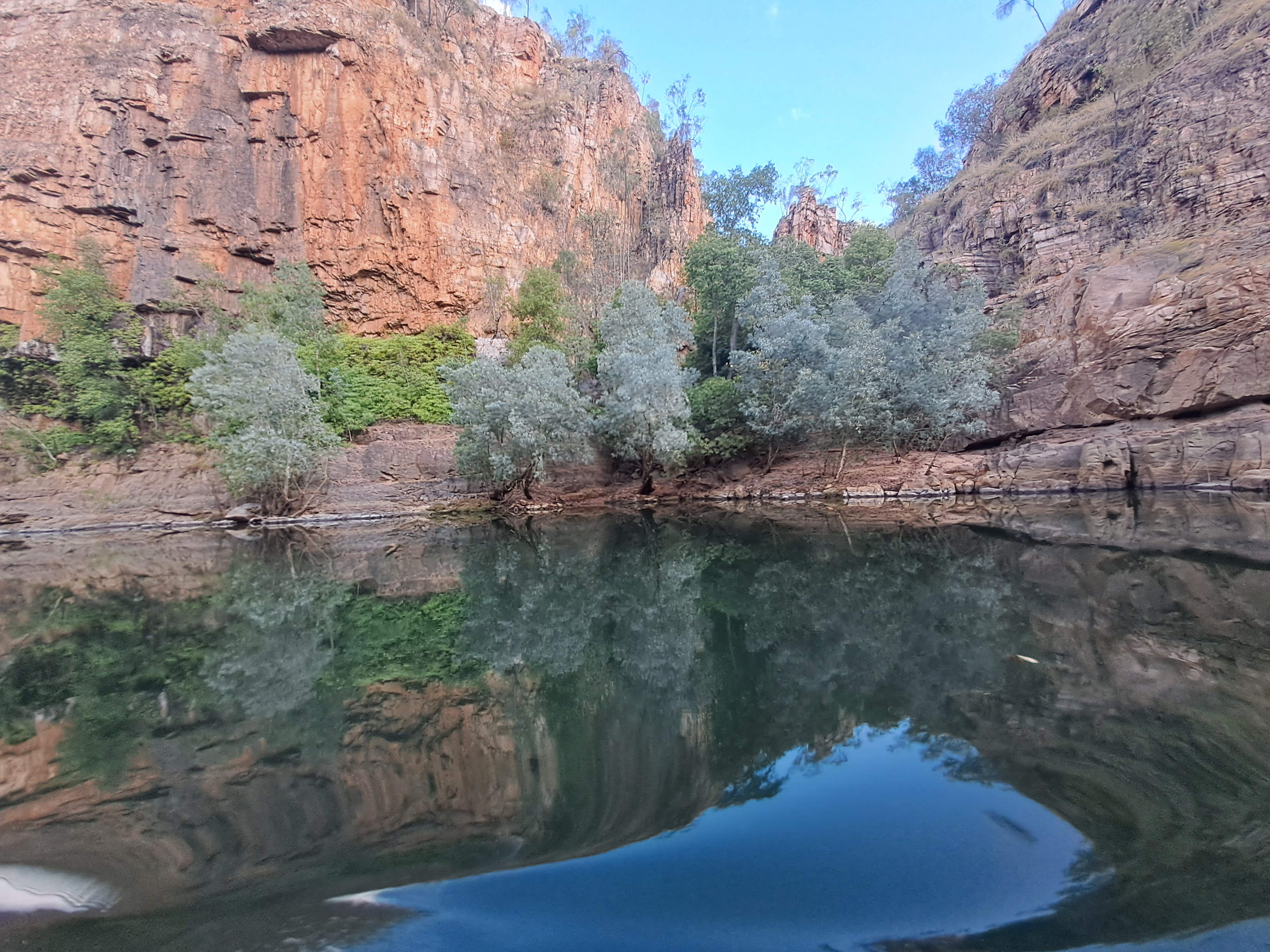 At this time of year near the end of the dry season the gorge was still and calm with beautiful reflections.
