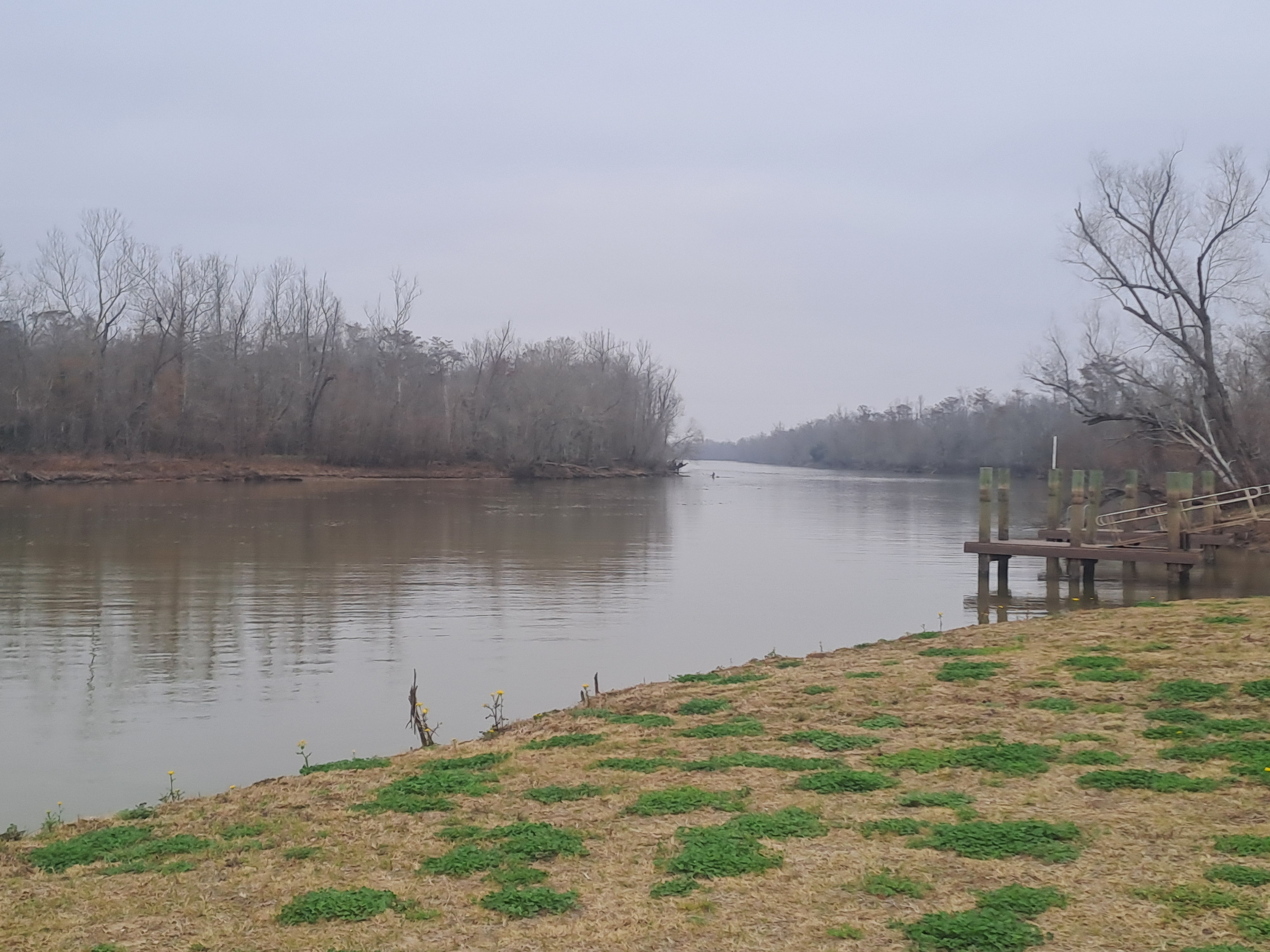 We’d booked a swamp tour and set off on a misty murky morning, which I gather is fairly normal for such a swampy place. The river we went out on had a bank by its side topped by a streel wall, we came in through a massive gate which, no doubt, closed when flooding occurs.