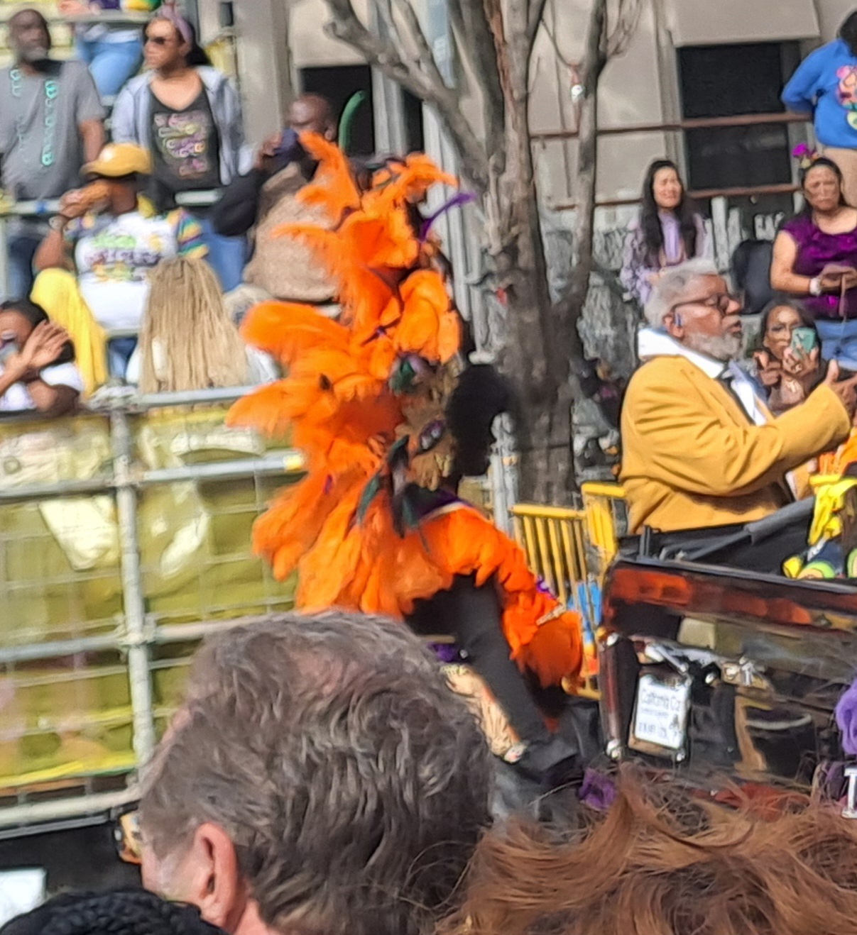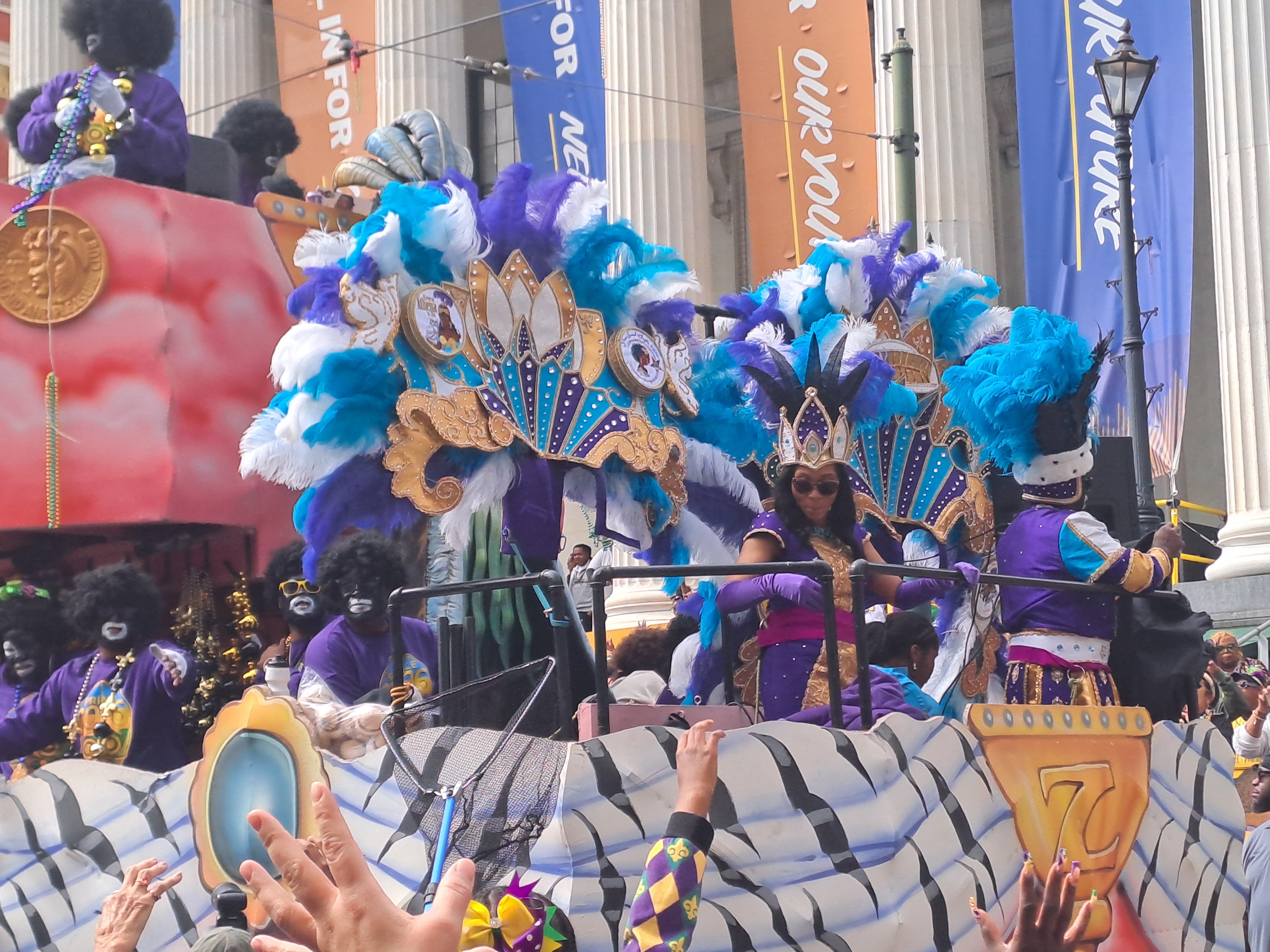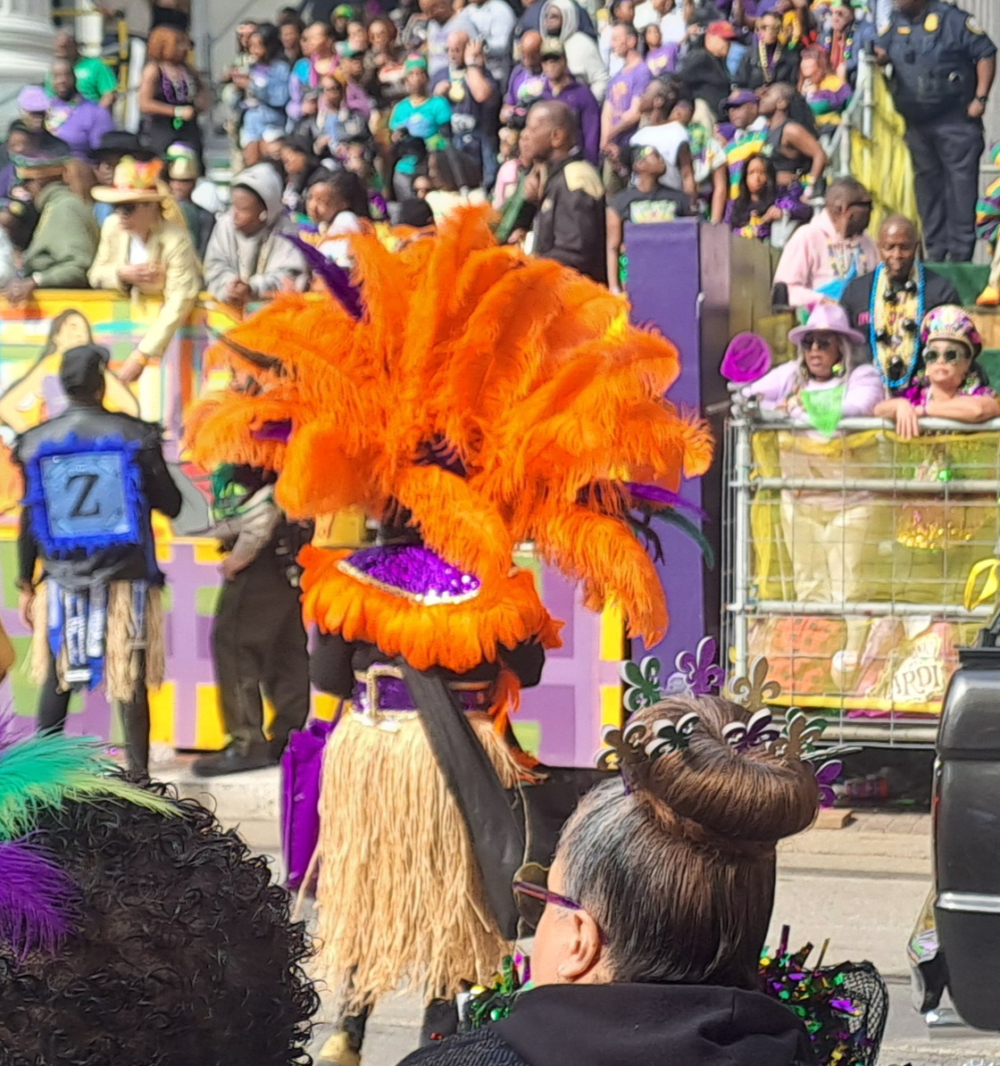 We had booked for the Zulu and Rex parades on the last day, had to be there by 8am. We wondered what the local enthusiasm would be given that there was a lot of late night activity. However as we left early to walk to the grandstands we realised we were the late ones. The Zulu parade finished near our campground and things were already busy. Families had set up chairs cooler boxes etc. along the route. Food stands were doing a roaring trade The parade wouldn’t reach here until about lunchtime.