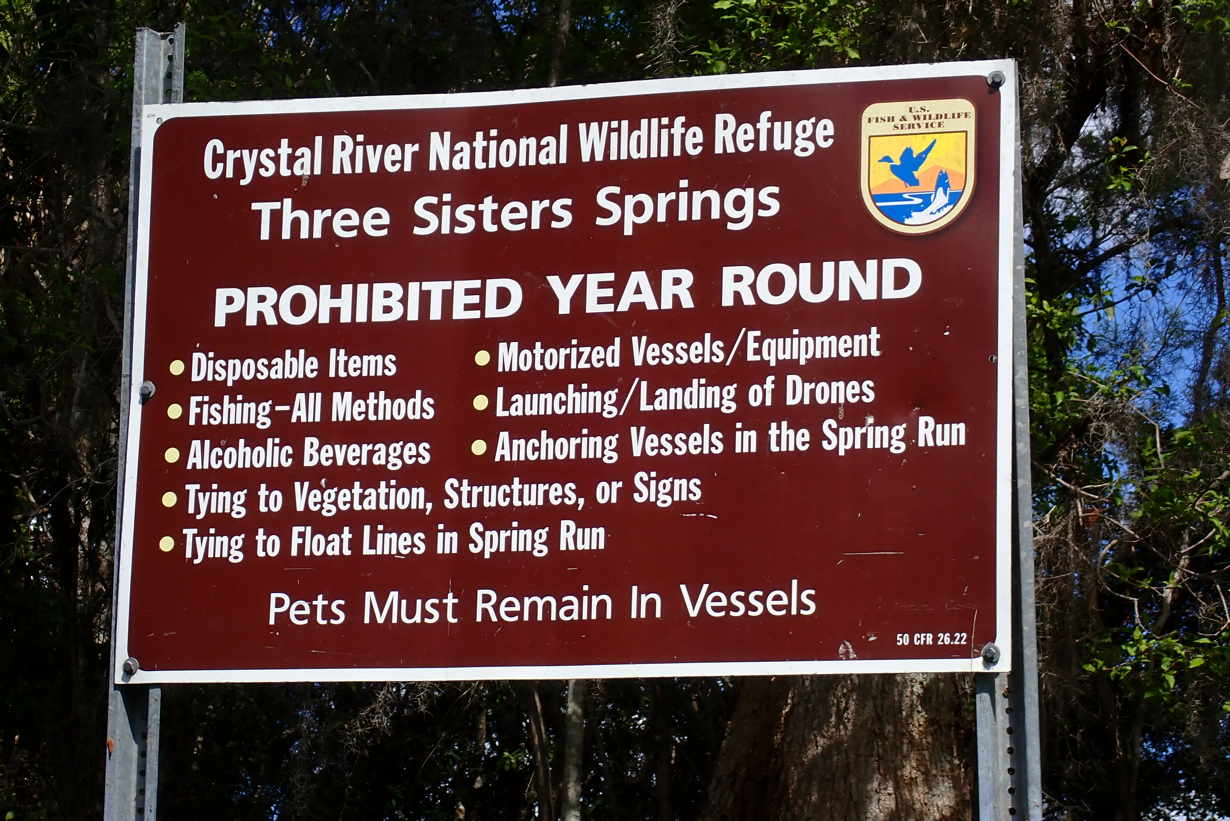 The area around Three Sisters springs was totally out of bounds to any boat, kayak etc. and there is an area swimmers can’t go over as well to give the manatee a resting area. There was a Water Sheriff in a kayak protecting the springs and working with the tour guides to enforce the protection.
