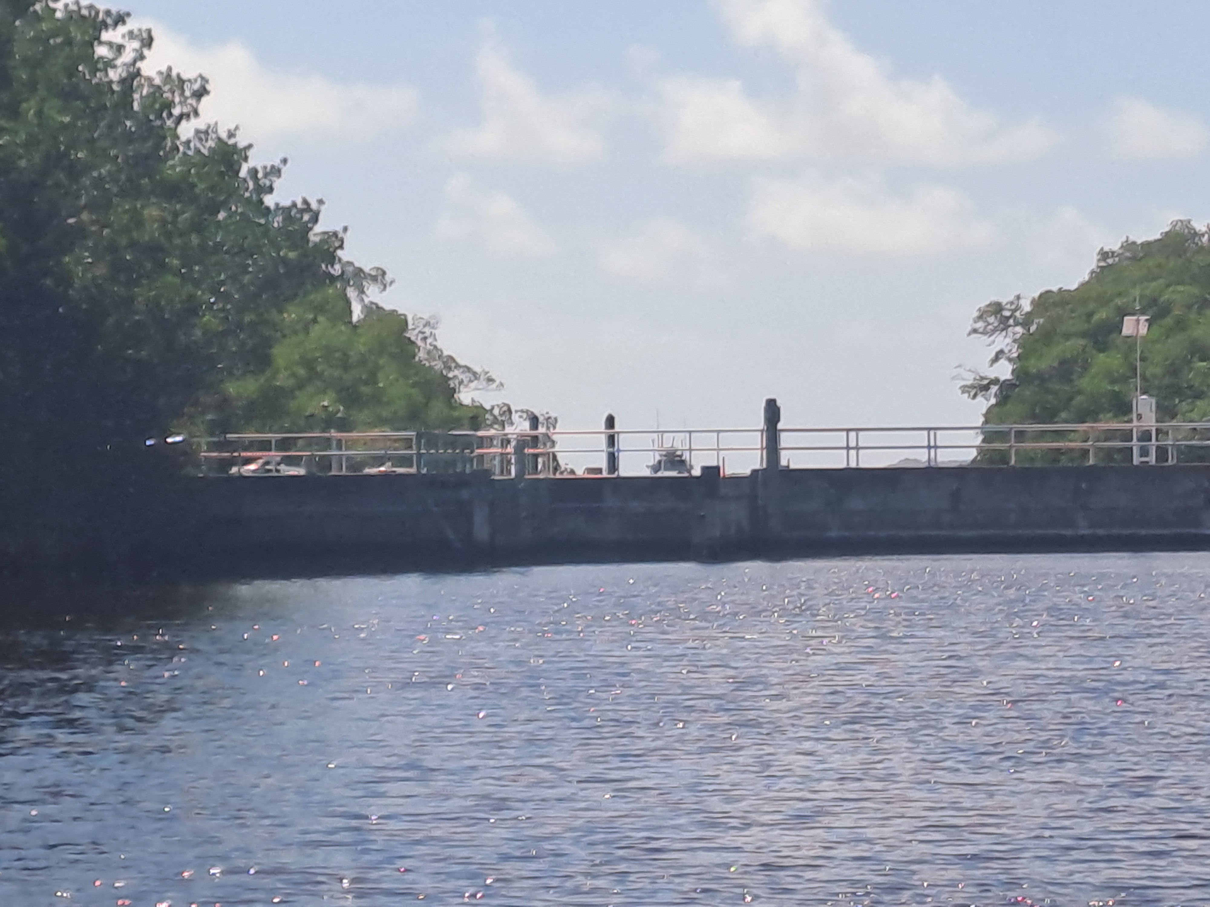 There used to be a natural barrier between the ocean and the Everglades. This was broken through to save a 60 mile trip around. However, this meant an influx of salt water that was detrimental to the local habitat. So the plug (below) was installed which keeps the environments as they should be.
