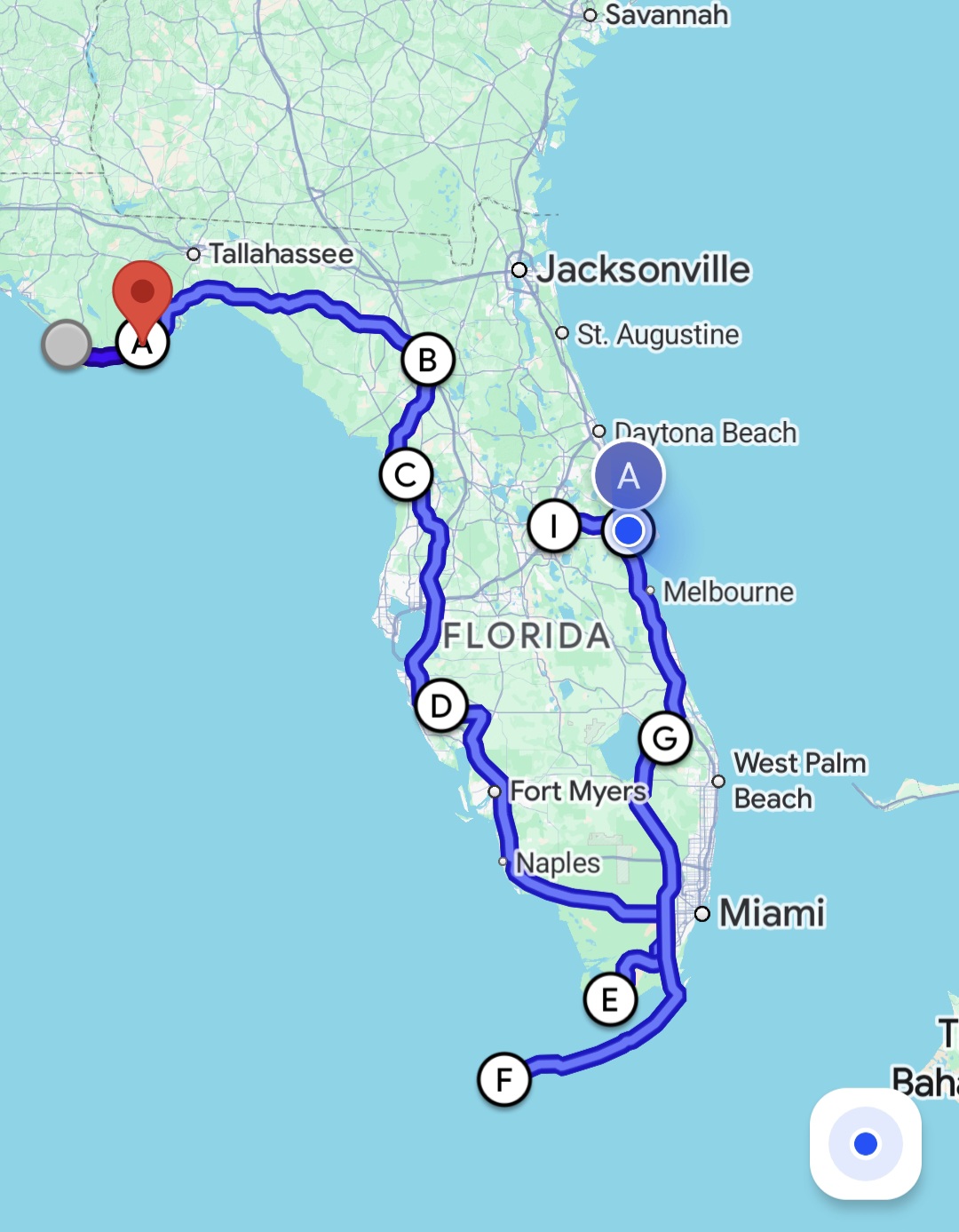 We entered the Sunshine State in the pouring rain! It wasn’t living up to its name. However, by the time we got to our campsite next to the sea, the sun had come out and it was finally warming up.