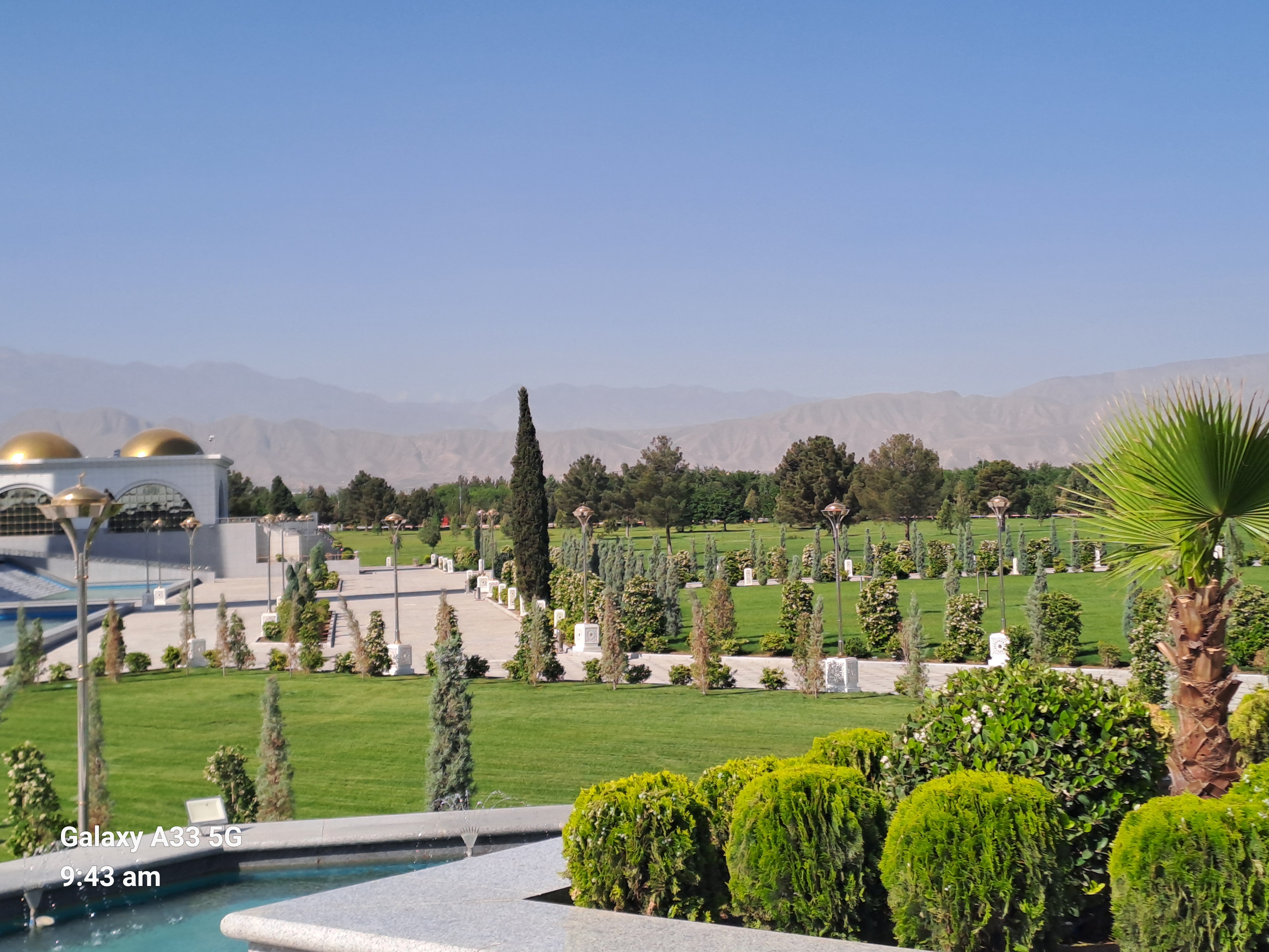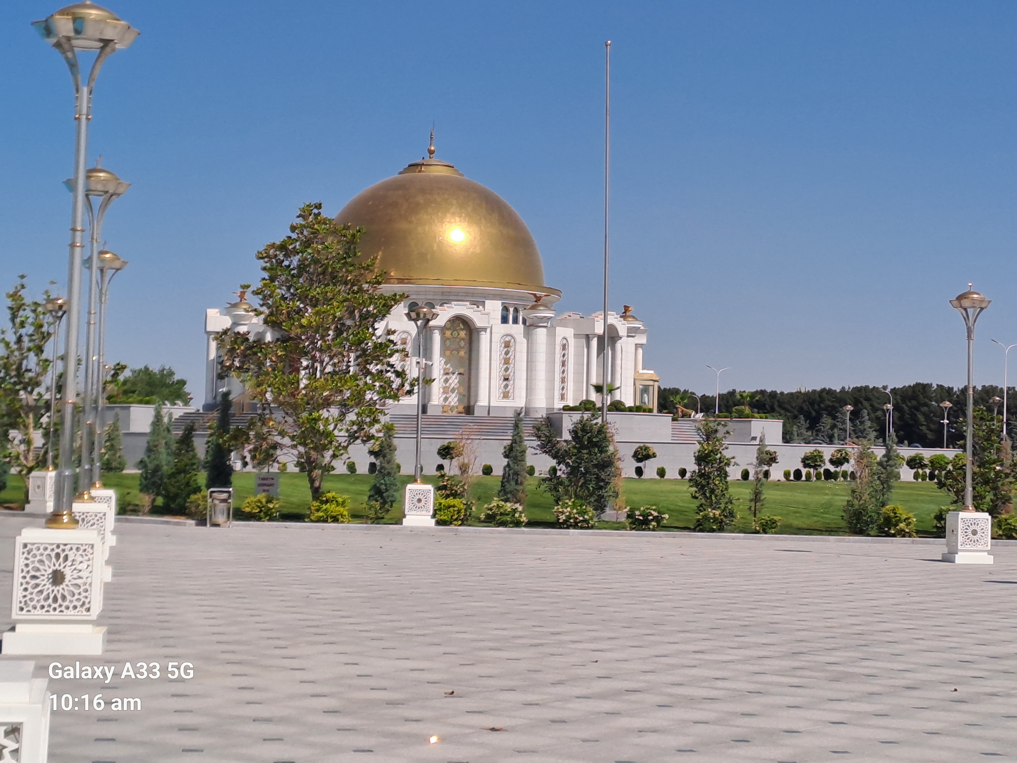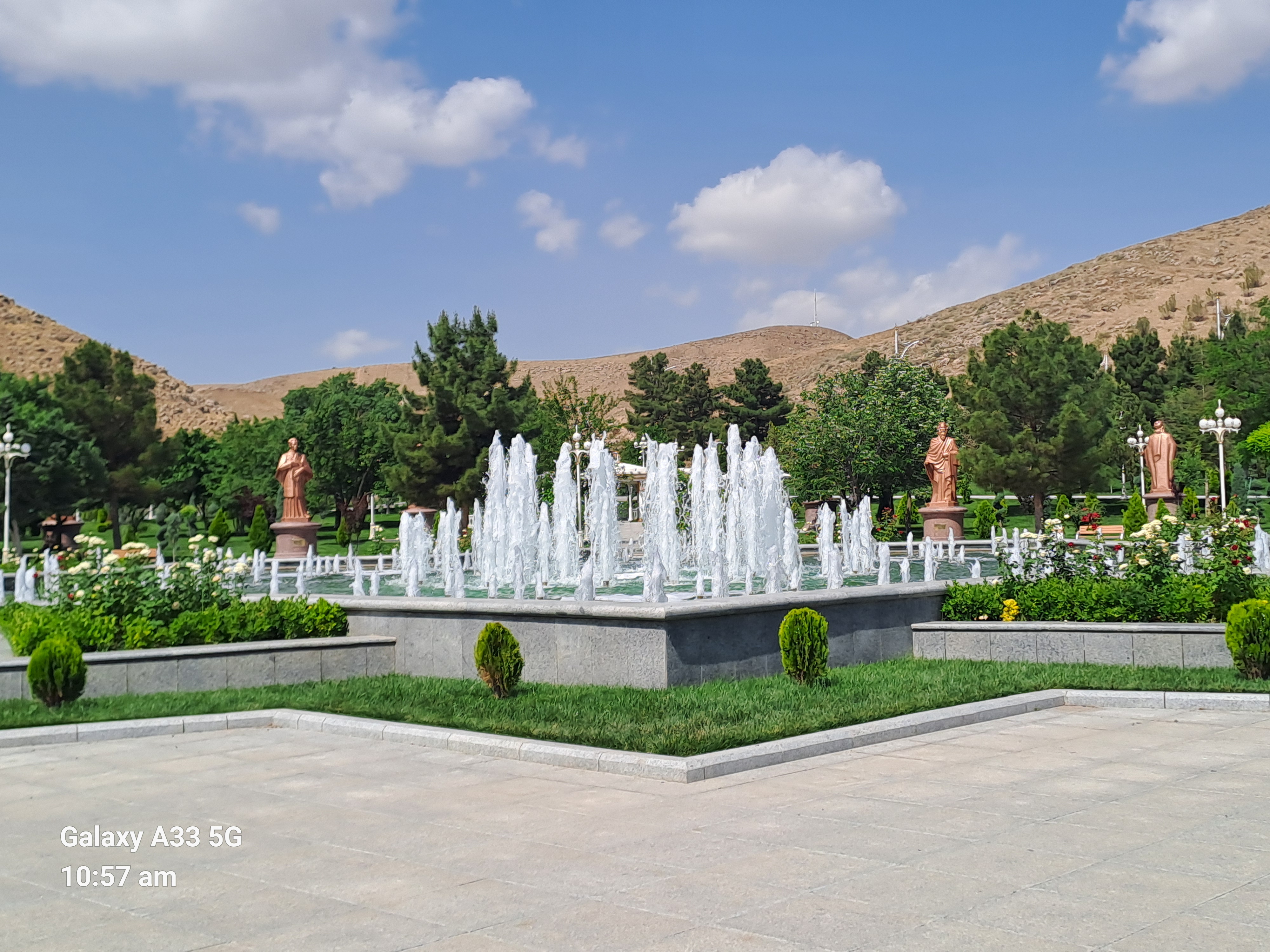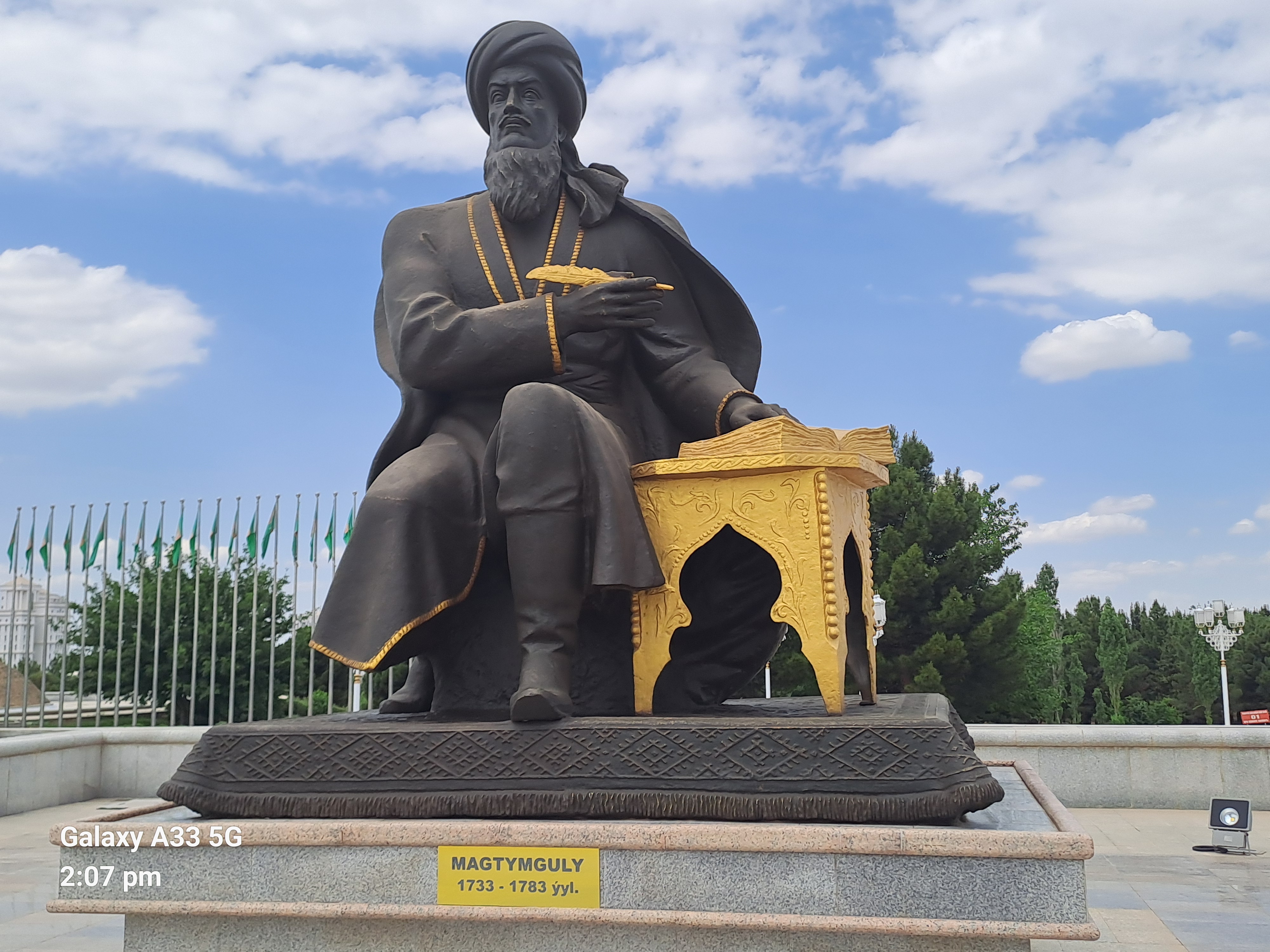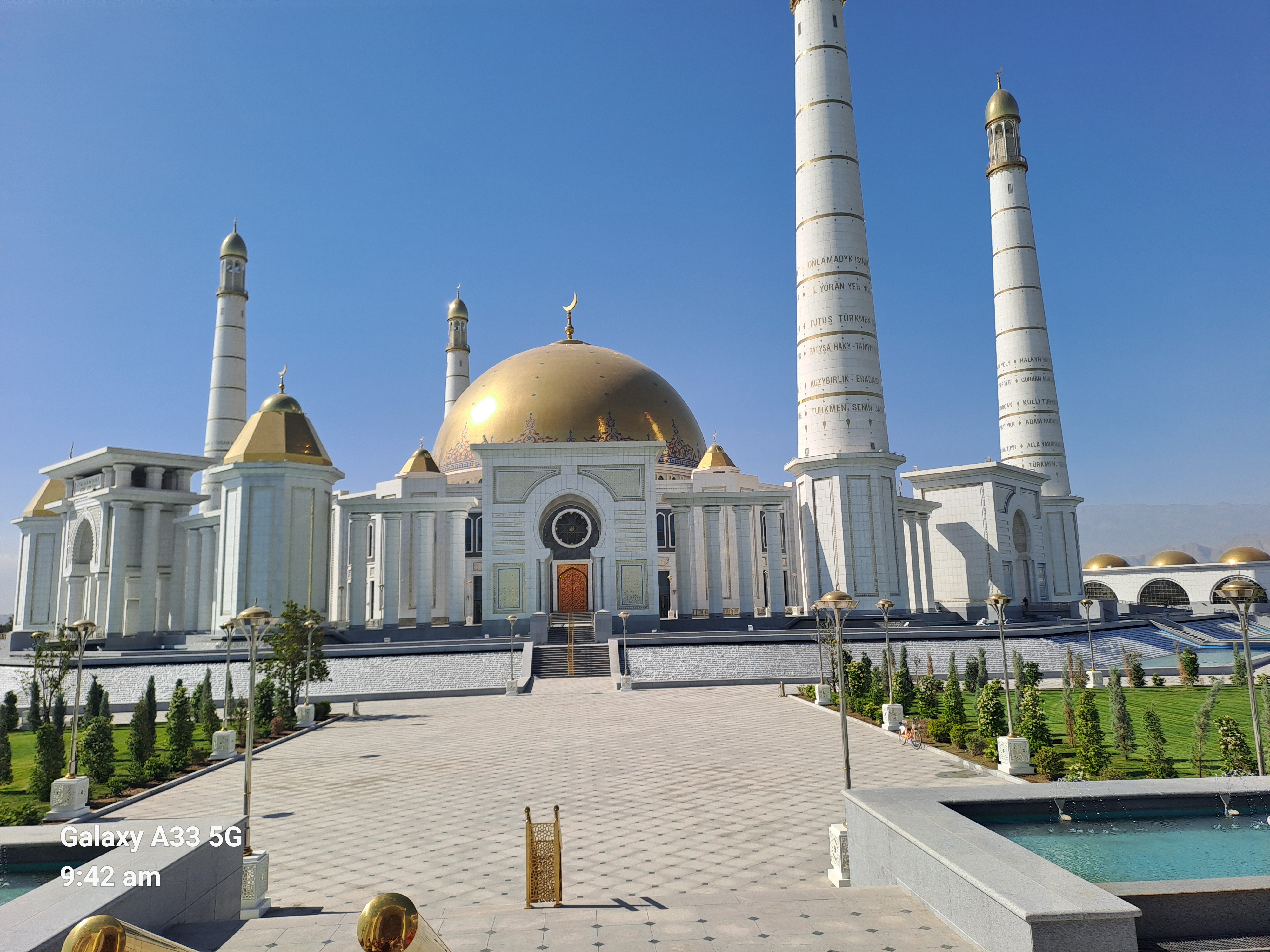 Next we went to see the statue to the poet Magtymguly the most famous literary figure in Turkmen – Iranian history, also a spiritual leader and philosopher. He was born 300 years ago and we were told the anniversary was that week. Again every where was surrounded by greenery and fountains.
