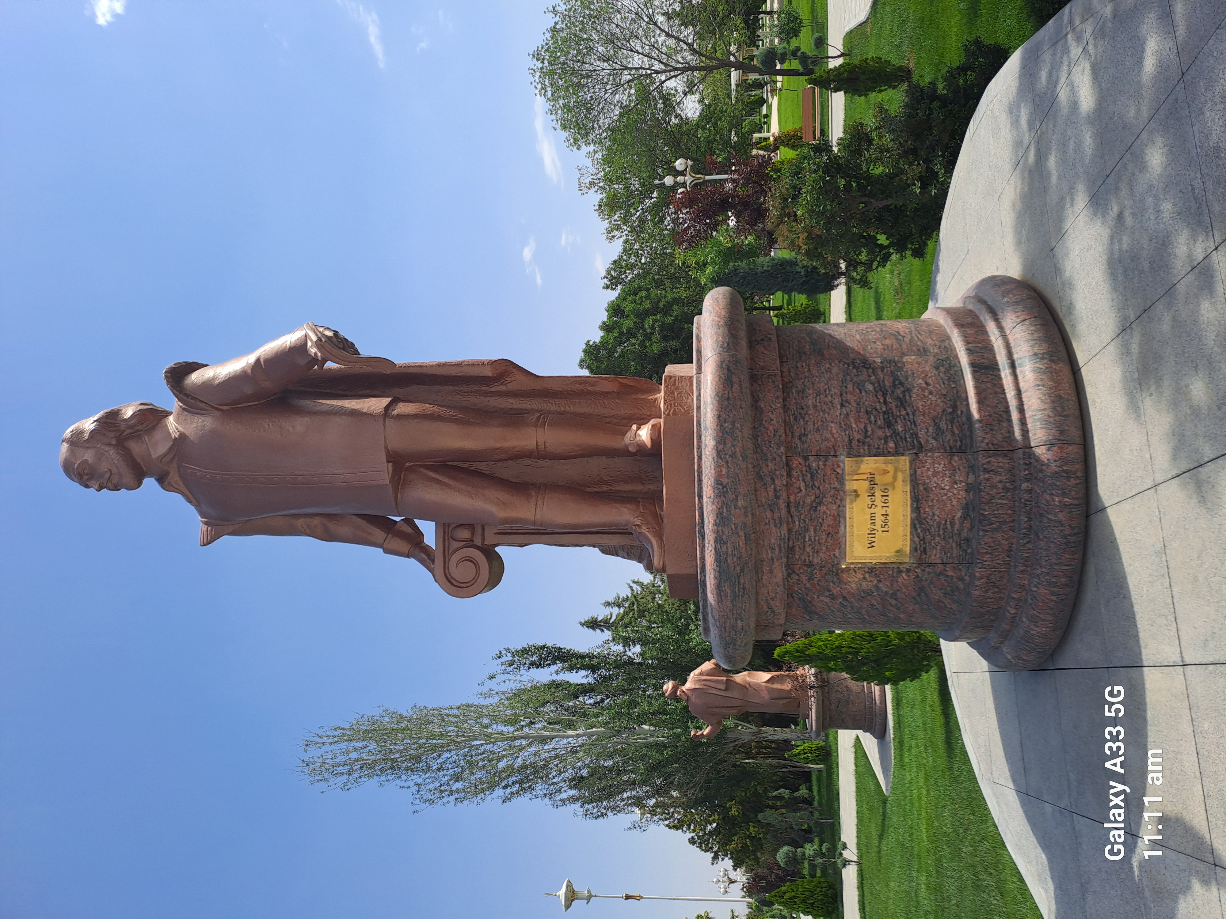 we were taken to see the poets park a park full of statues commemorating poets from all over the world. We met William Shakespeare there. We also saw a monument to the 1st president.